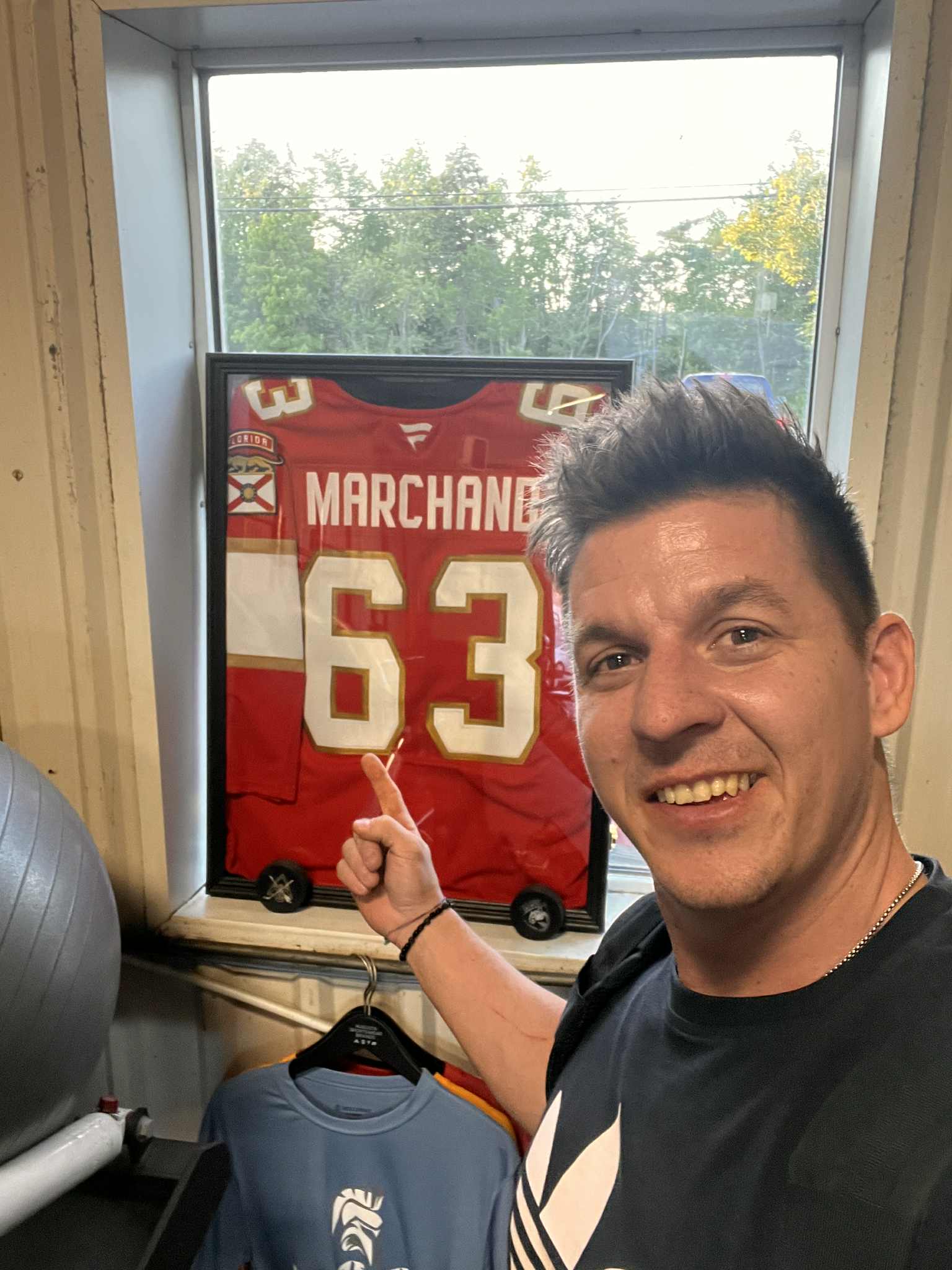 - Az elutazásom előtt rám írt Holló Pista (Holló István magyar bajnok korábbi jégkorongozó, Hegyi Ádám dunaújvárosi csapattársa, és a mai napig jóbarátja – a szerk.), aki kitalálta, hogy ha már ott járok, szerezzek egy aláírt Marchand-mezt az