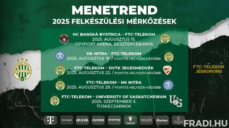Az FTC-Telekom a tervek szerint öt felkészülési mérkőzést játszik majd az ICEHL 2025/26-os idényének kezdete előtt.