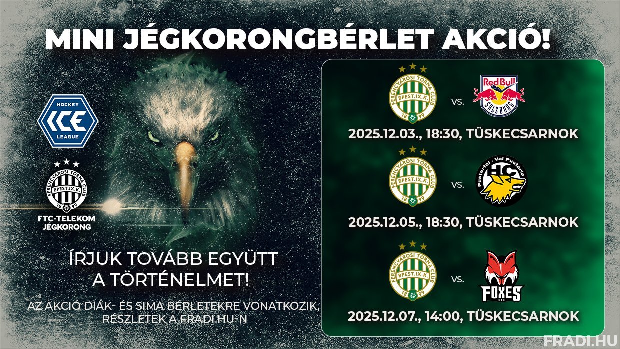 Ennek érdekében Mini Jégkorongbérletet vezetünk be, két változatban: egy standard, valamint egy kedvezményes diák/nyugdíjas verzióban. Reméljük, hogy az új bérletkonstrukció hozzájárul ahhoz, hogy közösen teremtsünk felejthetetlen hangulatot decemberi mérkőzéseinken. Jegyek EZEN A LINKEN!