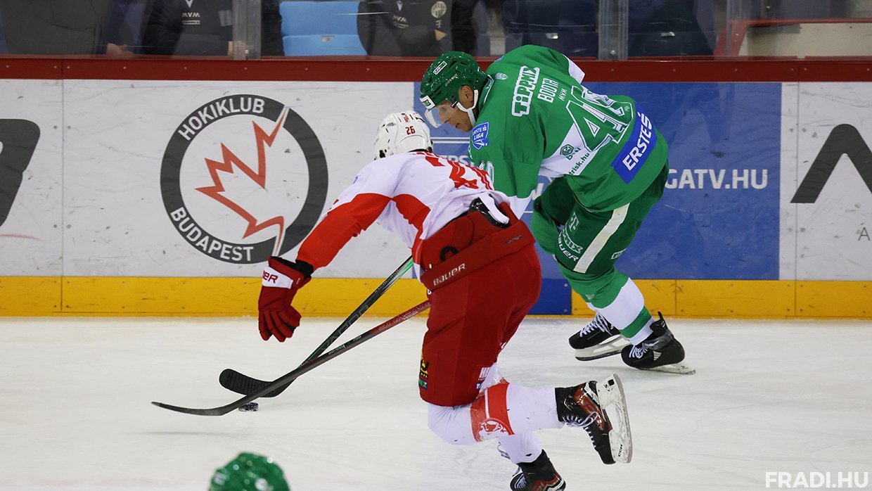Komótosabban jött ki a Fradi a szünet után is, igyekezett átvenni a DVTK a játék irányítását. Booth-tól továbbra is remek megmozdulásokat láthattunk, de összességében nem tudtuk irányítani a játékot. Ez pedig megbosszulta magát, egy hiba után Csiki Hunor léphetett el egyedül a koronggal, és megelőzve védőjét egy a semmiben góllal zárta az akciót (3-2). Ring ellen elkövetett szabálytalansága miatt kapott kétperces pihenőt Pineo, és bár voltak szép próbálkozásaink, a korong nem talált utat a vendégek hálójába. A DVTK egyre nagyobb nyomást helyezett a kiegészülés után a harmadunkra, ennek pedig meg is lett az eredménye, Simon Szathmáry cselezte be magát Nagy elé és közelről egyenlített (3-3). A második harmad utolsó percében járt a találkozó, mikor Anthony Luciani kapott ajándék korongot és ugyan Tóth a nyomában volt, de a támadó így is meg tudta szerezni a vezetést a Jegesmedvéknek (3-4).
