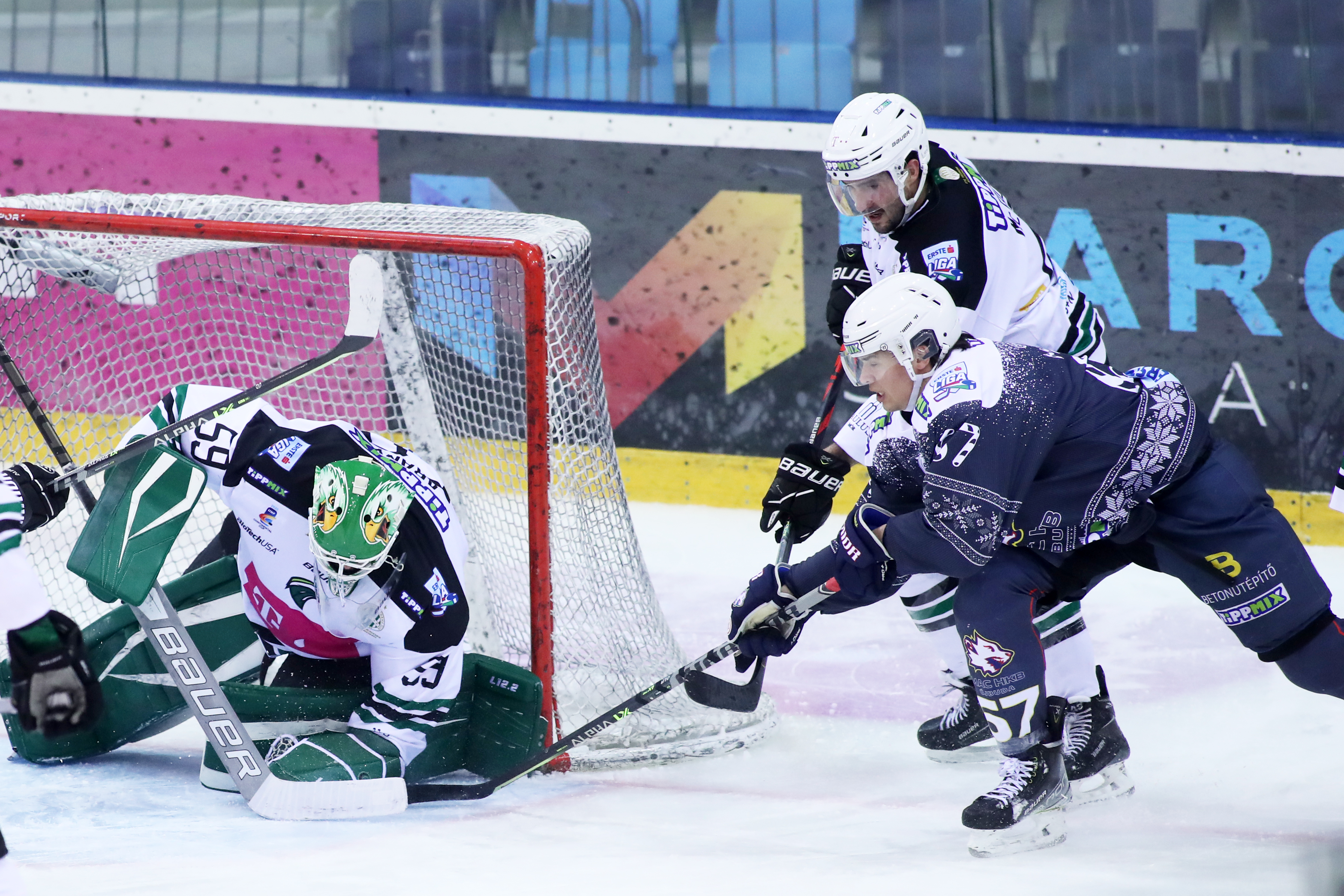 A tabella második helyéről várta a december-januári meccsdömping karácsony előtti utolsó állomását, a MAC HKB Újbuda elleni, ezúttal is papíron idegenbeli Tüskecsarnok-beli házirangadót magyar bajnoki címvédő férfi jégkorongcsapatunk. Fodor Szabolcs együttese remek formában érkezett a találkozóra, a mieink az elmúlt kilenc ligameccsükből nyolcat megnyertek, egy alkalommal pedig szétlövéses vereséget szenvedtek, és tudhattuk, hogy egy rendes játékidős győzelemmel egyetlen pontra zárkózhatunk fel a listavezető Sportklub Csíkszeredára úgy, hogy egy mérkőzéssel kevesebbet játszottunk. Emiatt is fontos volt a csütörtöki mérkőzés, és amiatt is, hogy a játékosok és a stáb nyugodt szívvel mehessenek el karácsonyozni, hiszen győztes mérkőzés után mégiscsak jobban esik a karácsonyi menü (amelyből Hegyi Ádám is készített egy fitt, mégis nagyon finom verziót a Fradi TV ünnepi kiadásában) és a bejgli…