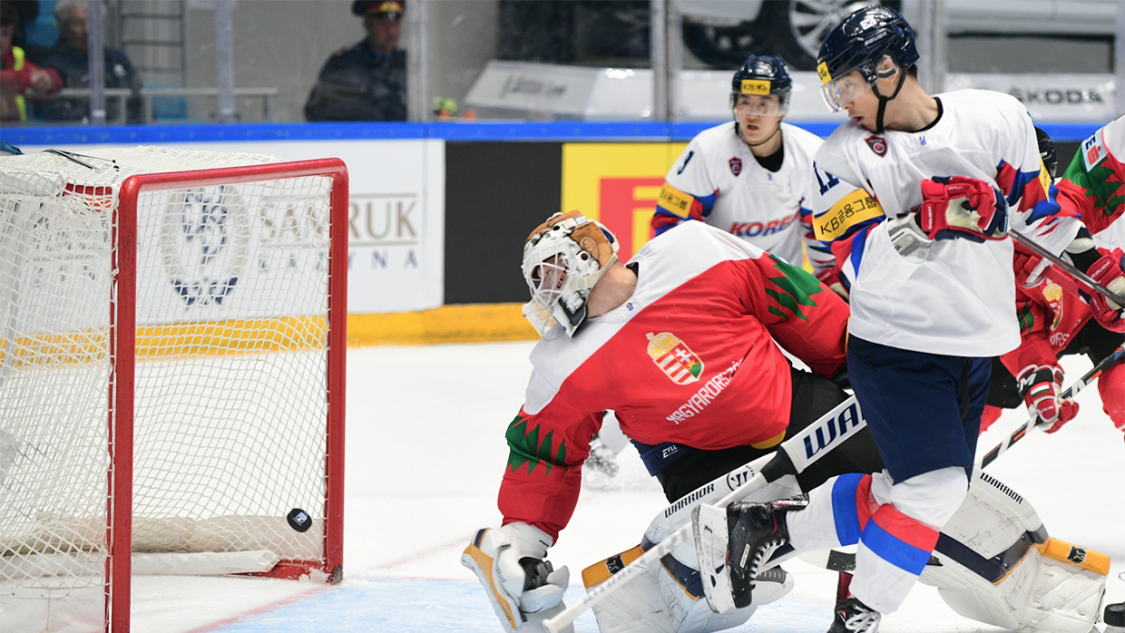 Az első harmadban mi domináltunk, azonban egy eladott korong után Sin Szang Vu lövése átment Bálizs lábai között, így a dél-koreaiak szereztek vezetést (0-1). Azonban hamar érkezett a válasz. Galló kerülte meg a kaput, próbálkozása kipattant, azonban Hári érkezett a hosszún és kiegyenlített (1-1).