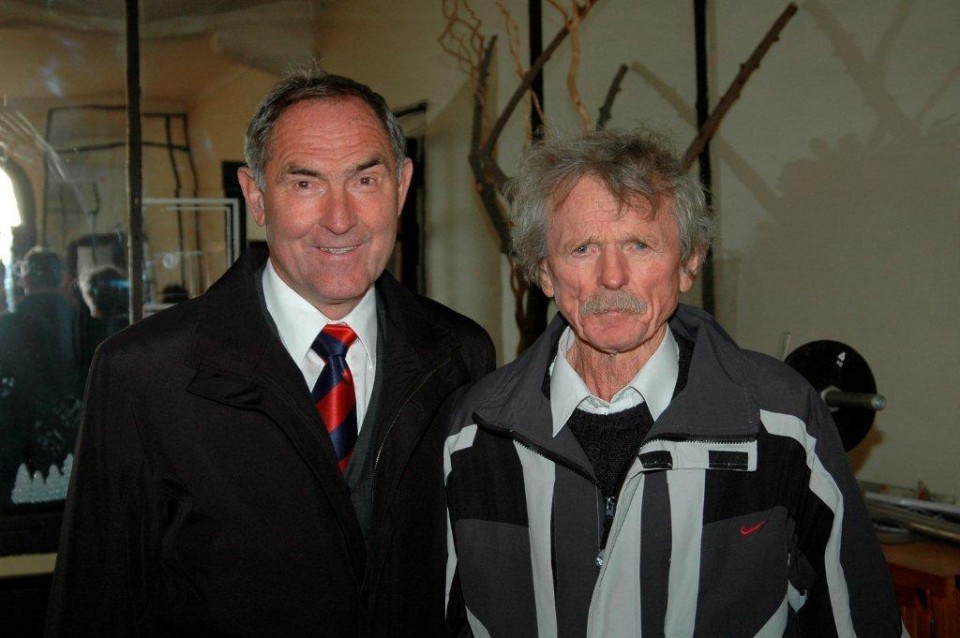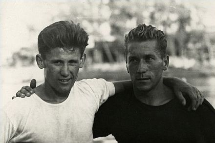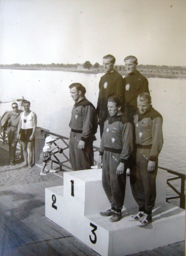 A kép jobb oldalán Babella László, a balon pedig az az ember, akit ő fedezett fel, ő edzette és ő ajánlotta a Fradiba, aki lett az FTC máig egyetlen kajakos olimpiai bajnoka, Hesz Mihály.