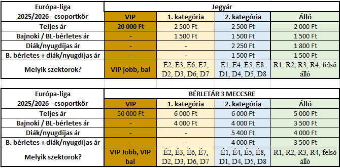 Hétfőn mindhárom találkozóra elindult a jegyértékesítés, a szokásos felületen, a meccsjegy.fradi.hu-n, illetve személyesen nyitvatartási időben a Kismartoni úti pénztárban lehet a belépőket megvásárolni. Kedvezményes áron kapható bérlet mindhárom mérkőzésre, amely szintén az említett két úton szerezhető be. A teljes árú ülőjegyek 2500, az álló belépők 2000 forintba kerülnek.
