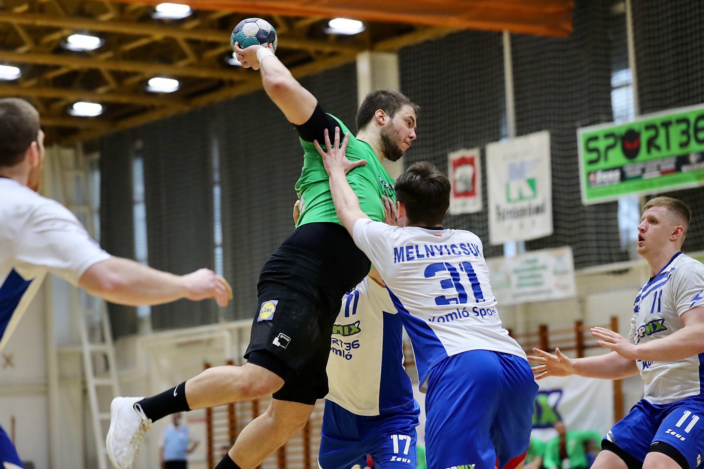 A második játékrészt is jól kezdtük, fiatal tehetségünk, Prainer Viktor három gyors góllal szállt be a játékba, héttel is vezettünk. (13-20) Egy néhány perces rövidzárlat után négy gólra tudott zárkózni a Komló, de ezt követően Győri Kristóf ismét bemutatott néhány bravúrt, és támadásban is összekaptuk magunkat. A hajrának ötgólos vezetéssel (22-27) vágtunk neki, ebből kettőt sikerült is megtartanunk, így megérdemelten hoztuk el a két pontot Komlóról, és vágtunk vissza a februári, hazai vereségért.