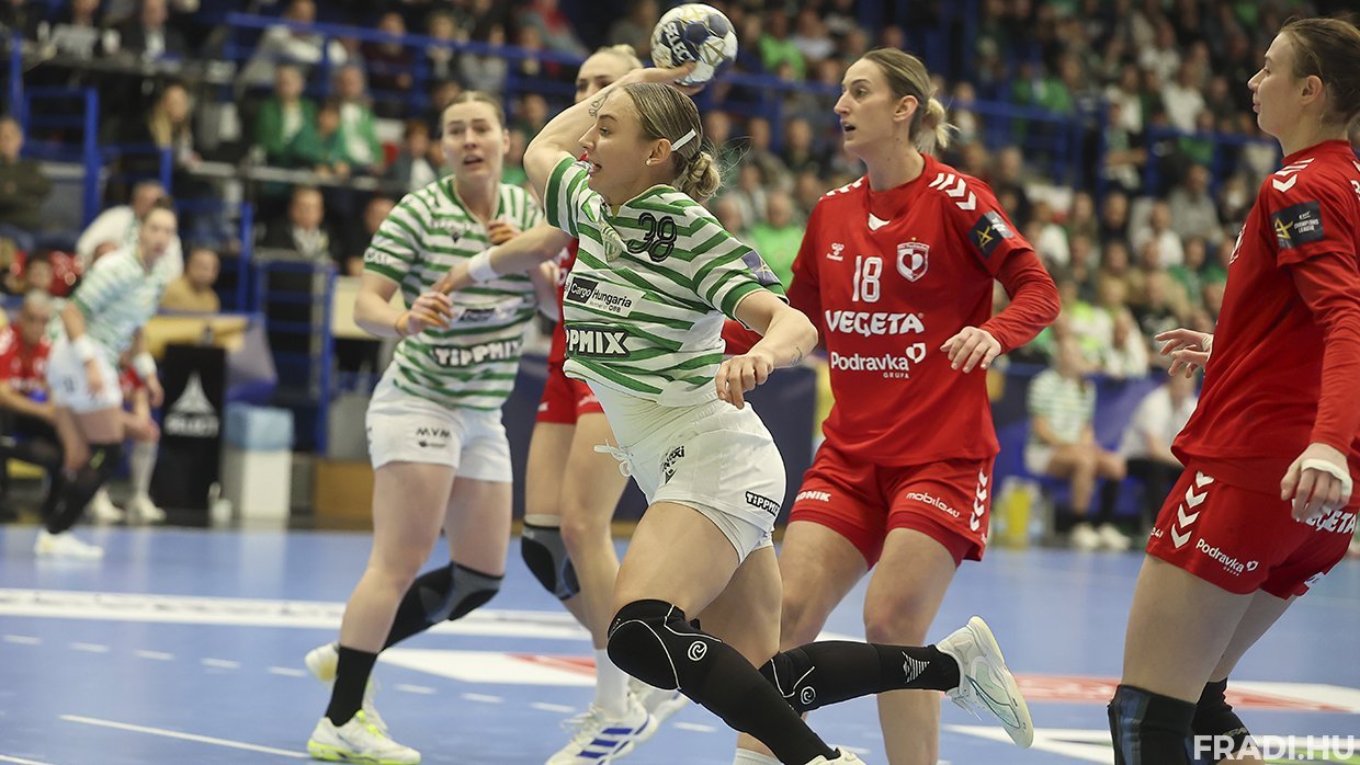 Ennek megfelelően nagy lendülettel kezdtek a mieink, két kivédekezett támadásra két gyors góllal tettük rá a bélyeget, Klujber Katrin és Vilde Ingstad talált be. Mi diktáltuk az iramot, igyekeztünk tempóban a vendégek fölé nőni, akik inkább felállt fallal szemben támadtak a cseréik után. Látszólag működött a terv, sok hibára késztettük őket, valamint Janurik Kinga is jól dolgozott össze a fallal, de sajnos nem tudtunk igazán élni a lehetőséggel, mert mi se voltunk precízek elöl. Beállóból három lövésünk is kimaradt, de balszélről és betörésből is rontottunk – az lehetett az érzésünk, hogy ha a helyzetekkel jobban élünk, az első játékrészben akár 5-7 góllal is vezethetnénk, de az eredményjelzőn nem ez állt. Az elején kiharcolt plusz kettőből a tizenötödik percben mínusz egy lett, igaz, gyorsan sikerült visszavenni az előnyt, és 11-8-nál már hárommal álltunk jobban. Időt kért Ivica Obrvan, majd a következő horvát támadásnál vétlen szituációban, de jogosnak tűnő piros lapot kapott Hársfalvi Júlia, ez pedig megtörte a lendületünket. 12-12-nél ismét egyenlített a nagyon szívósan harcoló Podravka, a szünetig viszont volt még egy ritmusváltás bennünk, és végül kétgólos vezetéssel mehettünk pihenőre (15-13).