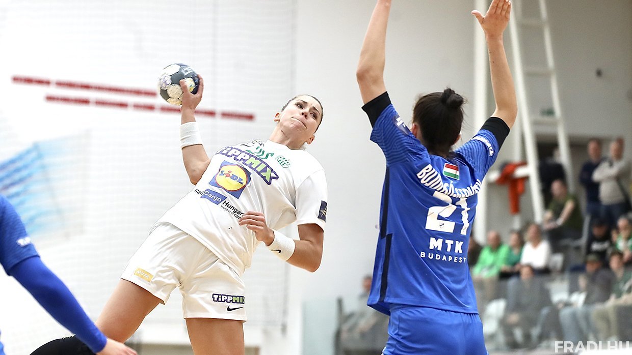 Az MTK ellen lépett pályára női kézilabdacsapatunk szombaton este, és a Sterbinszky Amália Kézilabdacsarnok (amely az MTK ideiglenes otthona) felét a Fradi-szurkolók töltötték meg. Volt is okuk örömre, mert együttesünk ott folytatta a védekezést, ahol szerdán Debrecenben abbahagyta. Alicia Stolle ugyan könyökbántalmai miatt kikerült a keretből, de a helyére beszálló Csiszár-Szekeres Klárával is ugyanolyan jól találta meg az összhangot Béatrice Edwige – vagyis hatékony volt a belső kettős munkája. Zsinórban lőtt négy góllal nyitottuk a meccset, tehát az alaphangot ezzel megadtuk, s bár két hetesgóllal megtörte a csendet az MTK, a játék képe nem sokat változott. Kiválóan szűrt a védelem, ha pedig mégis helyzetbe kerültek a hazaiak, Janurik Kinga ihletett formája babrált ki velük. Kapusunk igazán látványos védésekkel rukkolt elő, húsz perc alatt csupán kettő (!) gólt kapott (a hetesekre Suba Sára érkezett), csapatunk pedig az egy-egy elkönnyelműsködött támadás ellenére is magabiztosan vezetett (4-10). A játékrész végén pedig tovább nyílt az olló, előbb tízre nőtt a különbség, míg a szünetre tizenegygólos különbséggel mehettünk (8-19).