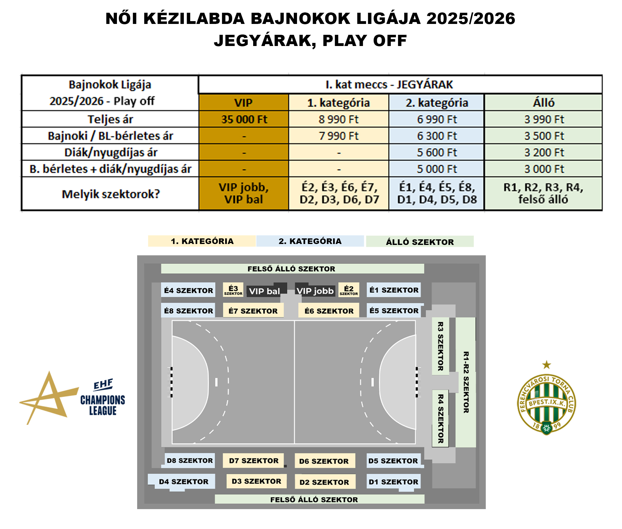 A Bajnokok Ligája rájátszás visszavágójára a saját helyükre elővásárlási joguk van azoknak, akiknek bérletük volt a csoportmérkőzésekre – a teljes csoportkörre szóló bérletek és a 2026-ban vívott három mérkőzésre szóló bérletek esetén is érvényes. Az értékesítés várhatóan március 2-án 12 órakor kezdődik, az említett bérletes helyeket pedig március 9-én 16 óráig foglaljuk.
