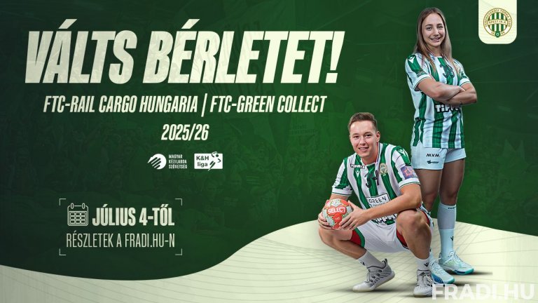 A 2025/2026-os idényre szóló bérletek értékesítése július 4-én, 10 órakor indul. A vásárlás továbbra is szurkolói kártyához kötött, a bérletek kiváltása a már megszokott módon zajlik: online a meccsjegy.fradi.hu-n lehet bérletet kiváltani, személyesen pedig az FTC-MVM Népligeti Sportközpont Kismartoni úti jegypénztárában, nyitvatartási időben. A pénztár rendszeresen hétfőnként 15:30 és 18 óra között, valamint a hazai meccsnapokon van nyitva, az egyéb, kivételes időpontokról pedig mindig tájékoztatást adunk.