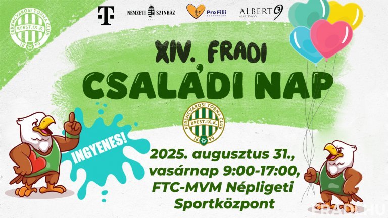 Az idén sem maradhat el az FTC és az Albert Alapítvány immár hagyománnyá vált rendezvénye: 2025. augusztus 31-én, vasárnap reggel 9 órai kezdettel a XIV. Fradi Családi Nap alkalmából várjuk az érdeklődőket az FTC-MVM Népligeti Sportközpontba! Az Albert Flórián Labdarúgó Utánpótlás és Sportalapítvány által szervezett esemény a 2023-as és 2024-es sikerek nyomán már zsinórban a harmadik évben kínál nem csak sportos, hanem kulturális programokat is.