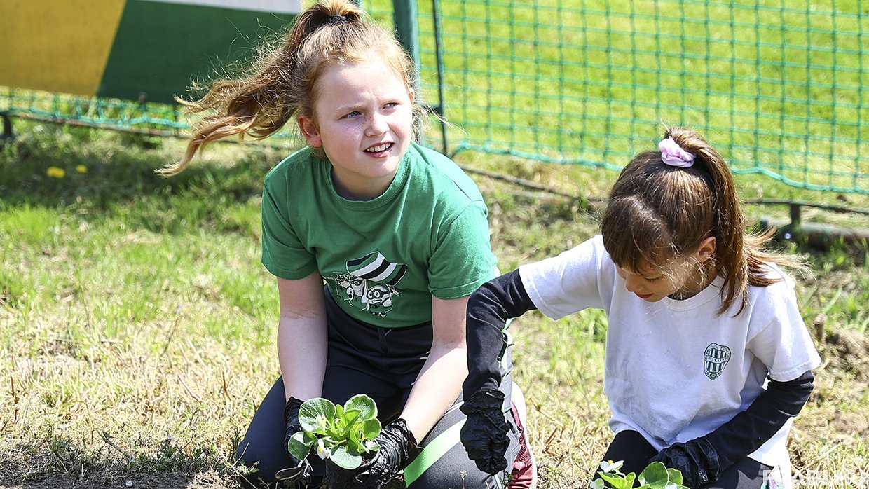 Április 22-én, a Föld napján a Fradi-család idén sem volt rest bepiszkolni a kezét, több, mint százan ültettek virágot a népligeti edzőközpontunkban. A 3700 fehér begónia elültetése jó hangulatban telt, kicsik és nagyok együtt tettek jót bolygónkért. Az esemény végén az elültetett begóniák egy csodás feliratot adtak ki, de hogy pontosan mit is, azt a jövő keddi Fradi TV-ben megmutatjuk!