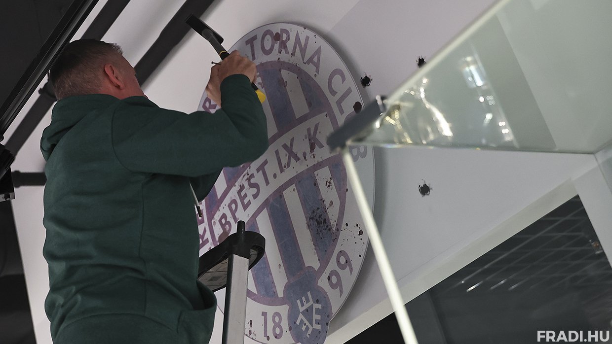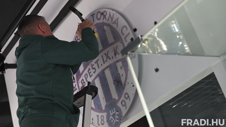 Az évforduló apropóján klubunk elnöke, Kubatov Gábor kalapácsot vett a kezébe, és jelképesen felszegelte címerünket a Fradi Múzeum falára – csak úgy, ahogy annak idején, 1956. november 1-jén felkerült emblémánk a stadion falára.