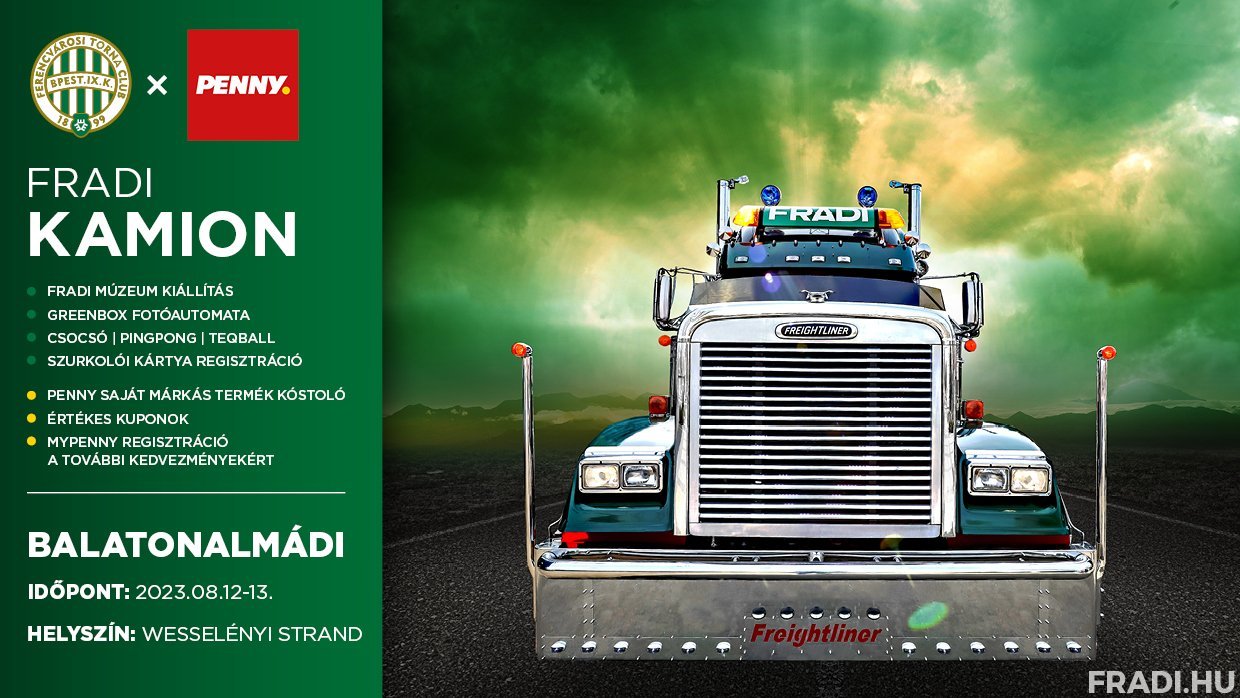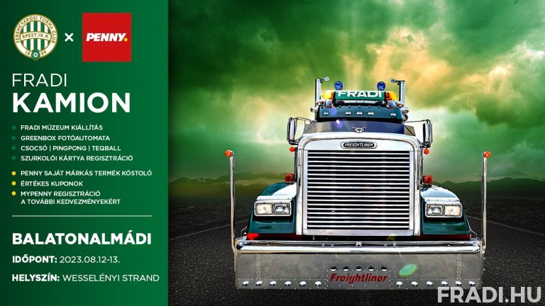 2023. augusztus 12-én és 13-án, szombaton és vasárnap Veszprém vármegyében, egészen pontosan Balatonalmádiban várja önöket a Fradi Kamion. A Wesselényi Strandon állomásozó járművünk mindkét napon 10.00-tól 19.00-ig lesz majd nyitva, kipróbálhatják csocsónkat, a mini pingpongot, a teqballt, fotóboxunkat, mindezek mellett pedig még szurkolói kártya regisztrációjára is lesz lehetőség!