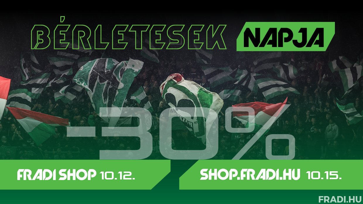 Az eddigi Bérletesek Napjához hasonlóan a Fradi Shopban nemcsak NB I-es labdarúgó-szezonbérlettel rendelkező szurkolóink, hanem további szakosztályi bérleteseink (jégkorong, kézilabda, vízilabda) is igénybe vehetik a 30 százalékos kedvezményt a megjelölt termékeinkre. A vásárlás során labdarúgó- és kézilabdabérleteseink esetén a szurkolói kártyájuk, míg a jégkorong- és vízilabdabérleteseinknél a bérletük mellett egy érvényes, fényképes, személyazonosságot igazoló okmány bemutatását kérjük.