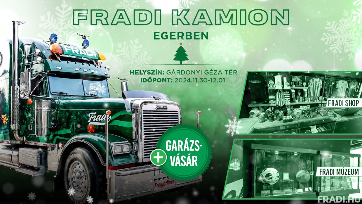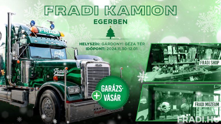 November 30-án és december 1-jén a Fradi Kamion Egerben, a Gárdonyi Géza téren állomásozik. A két napos esemény alatt a látogatók számos izgalmas programmal és különleges ajánlatokkal találkozhatnak klubunk tekintélyt parancsoló országjáró járművénél.