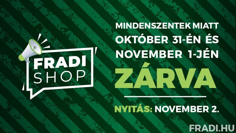 A shop.fradi.hu címen elérhető webshopot nem érintik a fenti változások, honlapunkon továbbra is a nap 24 órájában tudnak vásárolni!