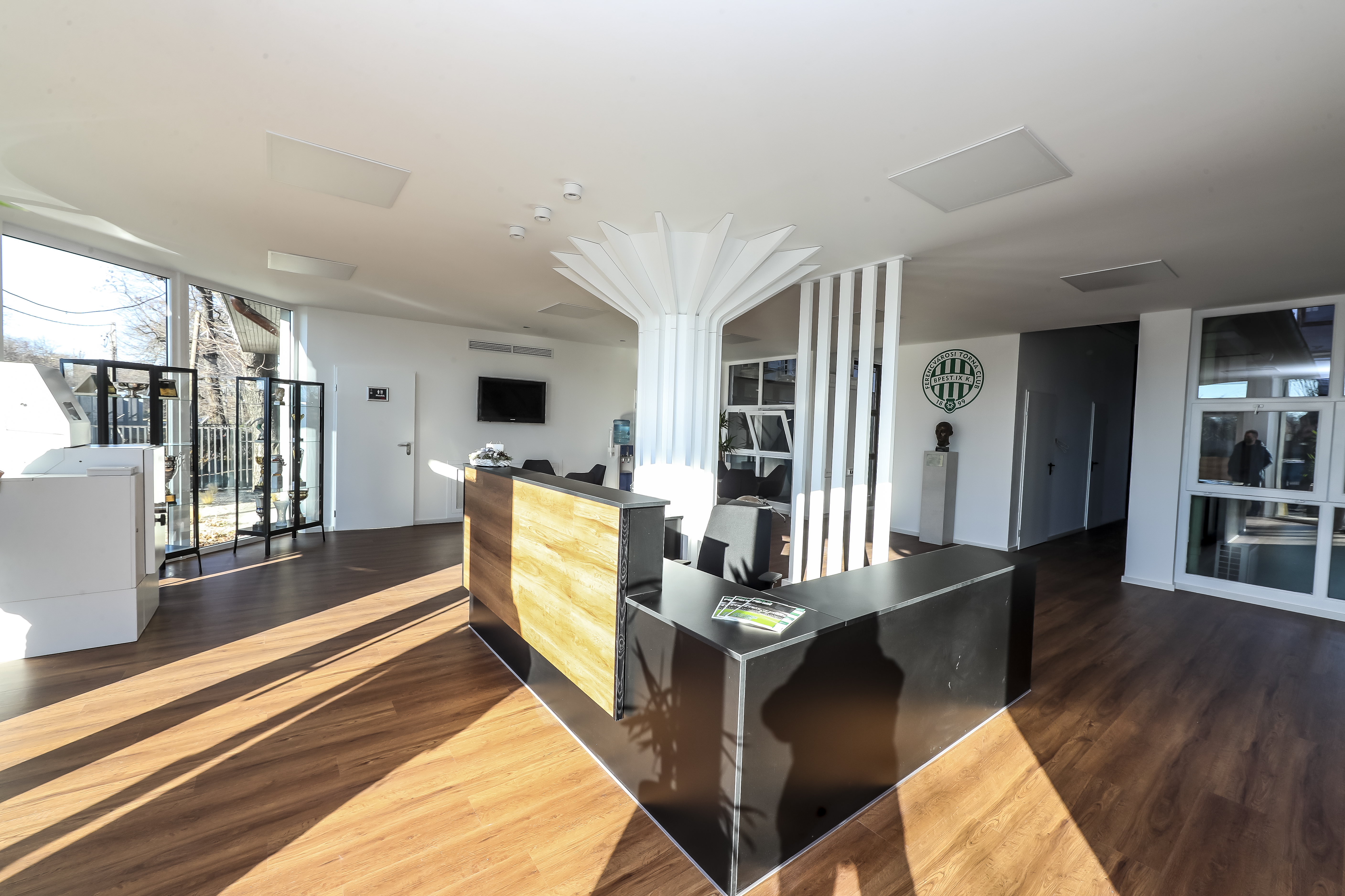 - Ez a székház fő belépési pontja, egy ilyen beléptető pontnak pedig a klub teljes filozófiáját kell sugároznia, hiszen ide az egyesület vendégei, üzleti partnerei, munkatársai érkeznek meg nap, mint nap. A célunk egy olyan környezet kialakítása volt, amely egyszerre esztétikus és korszerű, olyan, ami a legjobban közvetíti a Ferencvárosi Torna Club identitását – mondta el az FTC-MVM Népligeti Sportközpont üzemeltetési igazgatója, Paján Viktor.