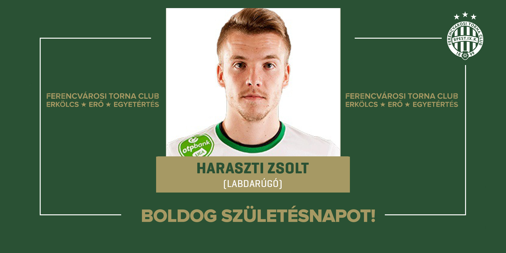 Ma ünnepli születésnapját labdarúgócsapatunk korábbi játékosa, Haraszti Zsolt, aki tagja volt a Ferencváros magyar bajnok és MK-győztes együttesének 2016-ban, valamint két Szuperkupát is nyert a klubbal.