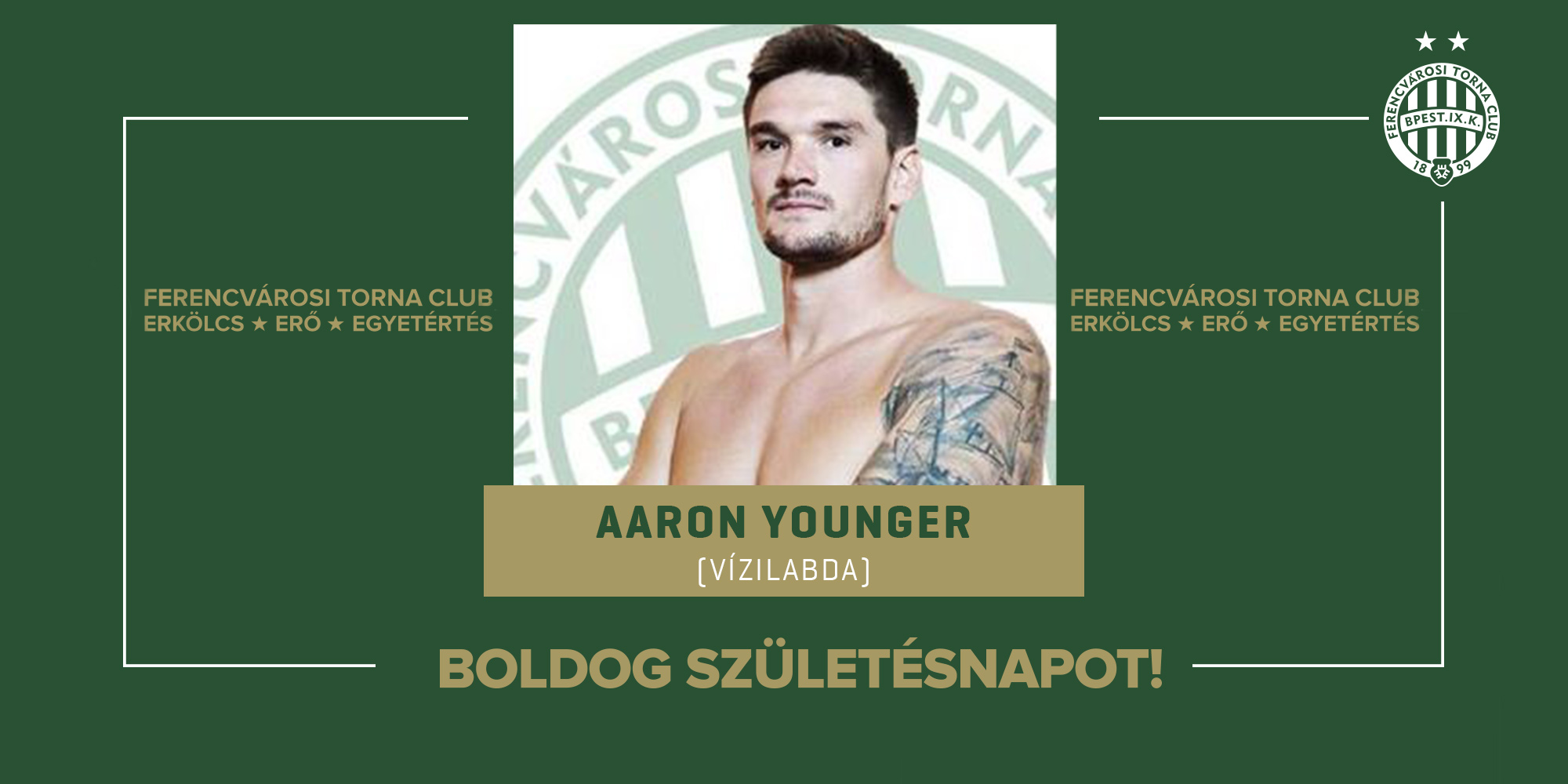 Ma ünnepli 32. születésnapját korábbi vízilabdázónk, Aaron Younger! Az ausztrál válogatott játékos 2018 és 2020 között egy-egy bajnoki címet és Magyar Kupát és két Euro Kupát nyert a Fradival, illetve tagja volt a klub történetének első Bajnokok Ligája-győzelmét szerző együttesnek.