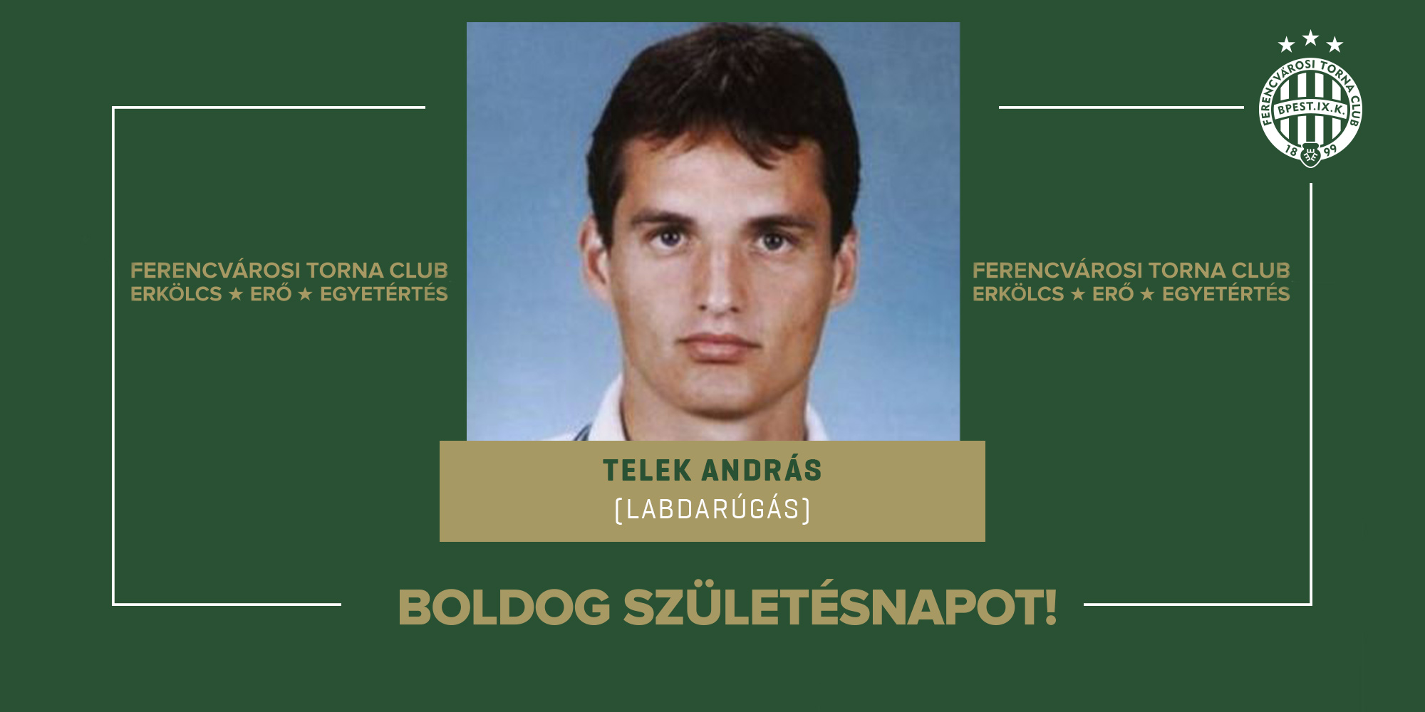 Ma ünnepli születésnapját az FTC korábbi játékosa, Telek András! Korábbi védőnk 1989 és 1999 között összesen 344 alkalommal lépett pályára a Fradiban, három bajnoki címet és négy MK-t, valamint három Szuperkupát nyert, emellett tagja volt az 1995-ben BL-főtáblára jutott együttesnek is.