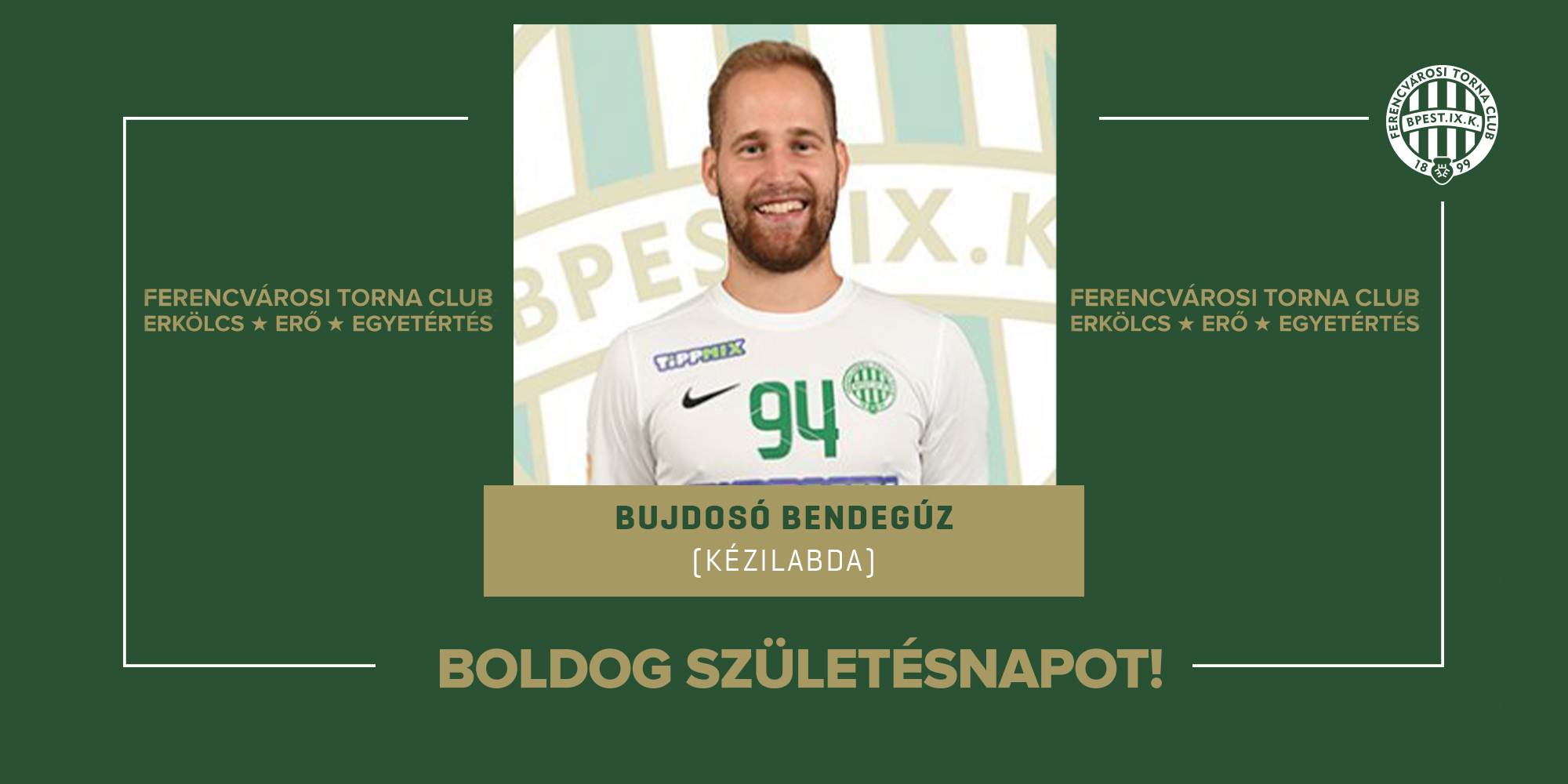 Ezen a napon ünnepli születésnapját férfi kézilabdacsapatunk játékosa, Bujdosó Bendegúz, aki 2016 óta erősíti az FTC-t.