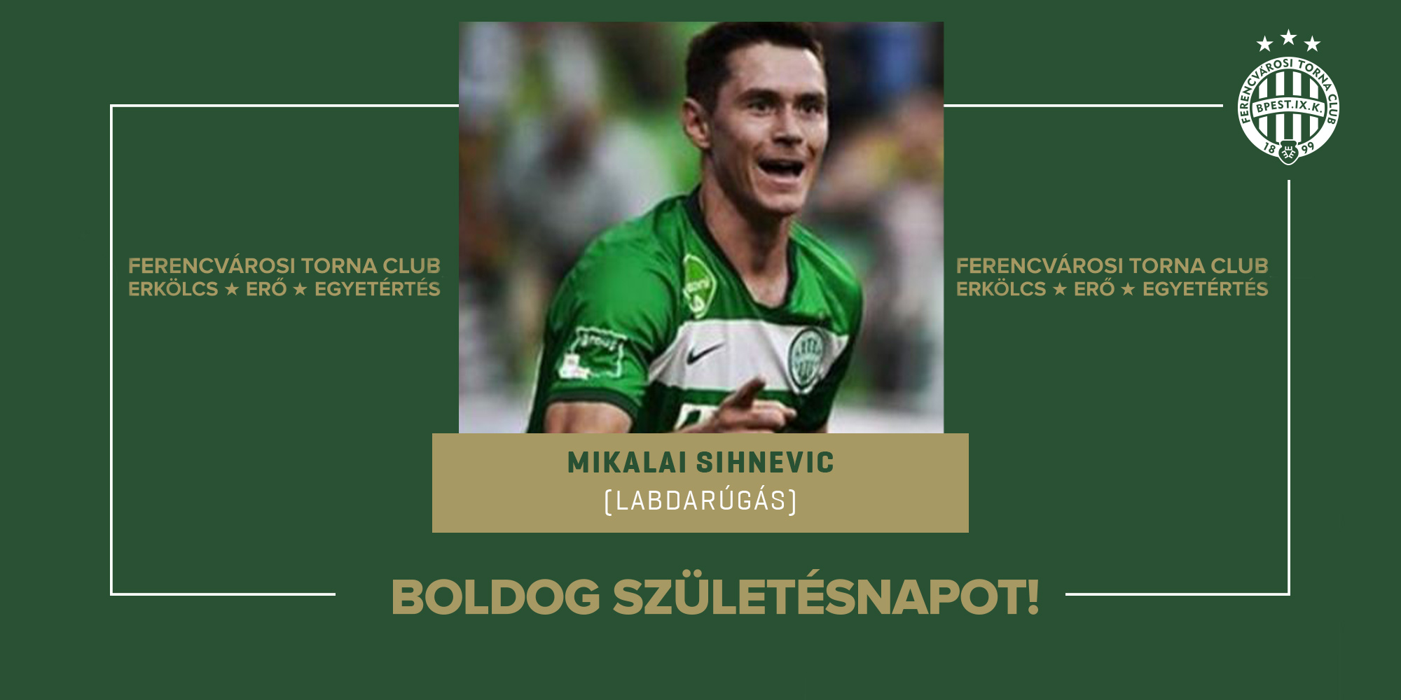 Ma ünnepli 34. születésnapját férfi labdarúgócsapatunk korábbi játékosa, Mikalai Sihnevich, aki 2019 és 2020 között futballozott a Ferencvárosban. Együttesünk színeiben összesen 62 mérkőzésen lépett pályára, tagja volt a 2018/2019-es és a 2019/2020-as bajnokcsapatunknak is.