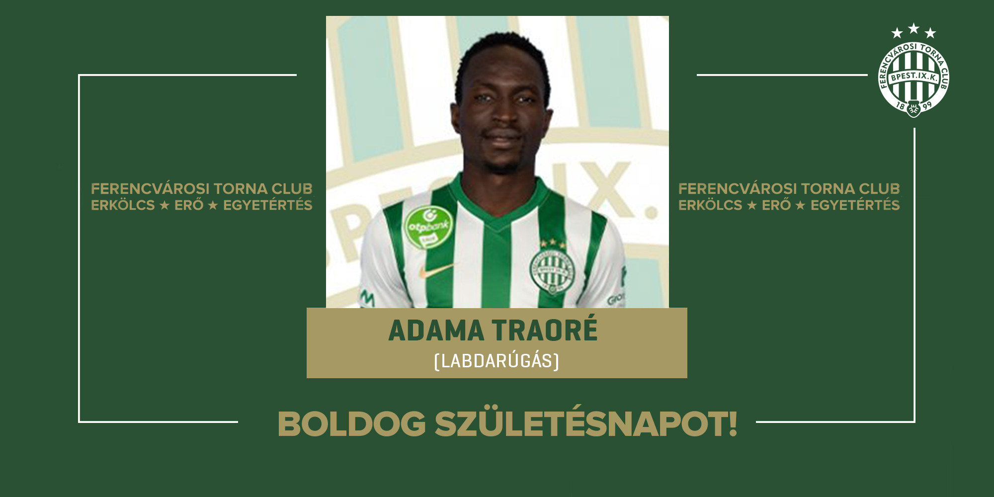 Ma ünnepli 28. születésnapját labdarúgócsapatunk játékosa, Adama Traoré, aki 2022-ben érkezett hozzánk. Tagja volt a 2023-as UEFA Európa Liga nyolcaddöntőben szerepelt csapatunknak, valamint az idény végén magyar bajnoki címet nyert együttesünkkel.
