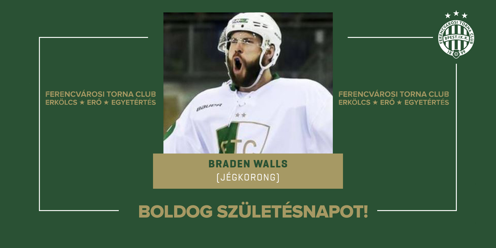 Ma ünnepli 38. születésnapját férfi jégkorongcsapatunk korábbi játékosa, Braden Walls! A kanadai támadó 2018 nyarától egy évet játszott a Ferencváros színeiben, tagja volt a 2019-es bajnok- és ERSTE Liga-győztes együttesnek.