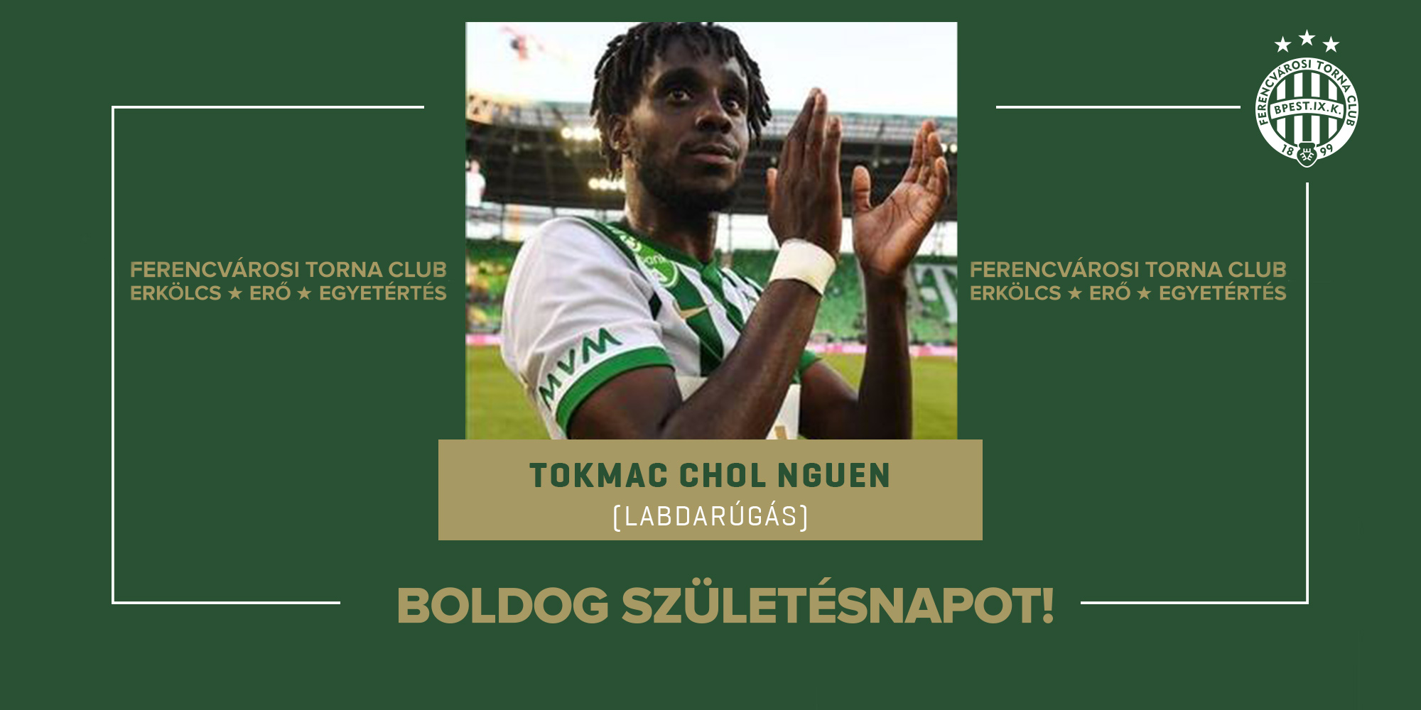Ma ünnepli születésnapját férfi labdarúgócsapatunk négyszeres magyar bajnok és MMK-győztes norvég válogatott támadója, Tokmac Nguen, aki tagja volt a 2020/21-es szezonban a Bajnokok Ligája-, valamint a 2019/20 és 2022/23-as idényben az UEFA Európa Liga csoportkörébe jutott együttesünknek.