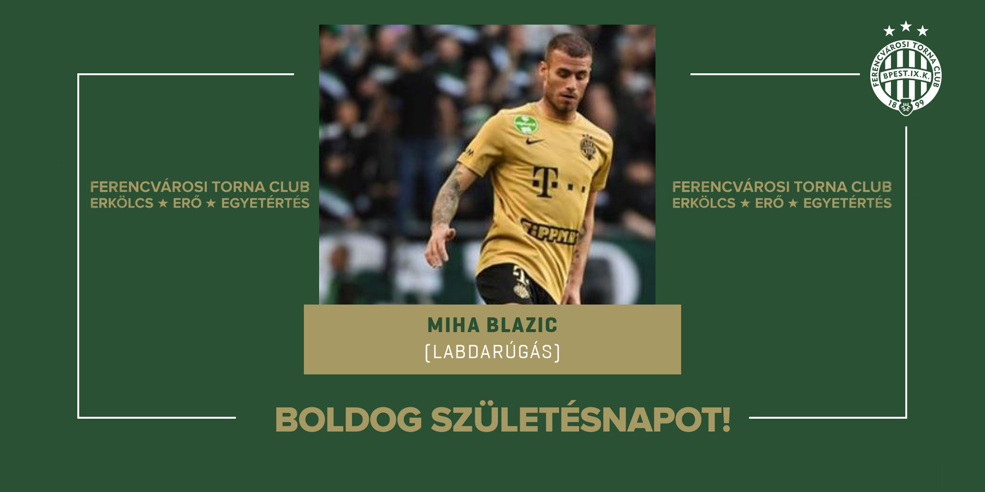 Ma ünnepli születésnapját férfi labdarúgócsapatunk korábbi játékosa, a Fradival négy magyar bajnoki címet, Magyar Kupát nyert Miha Blazic, aki tagja volt a Bajnokok Ligája- és az Európa Liga-csoportkörébe jutott együttesünknek.