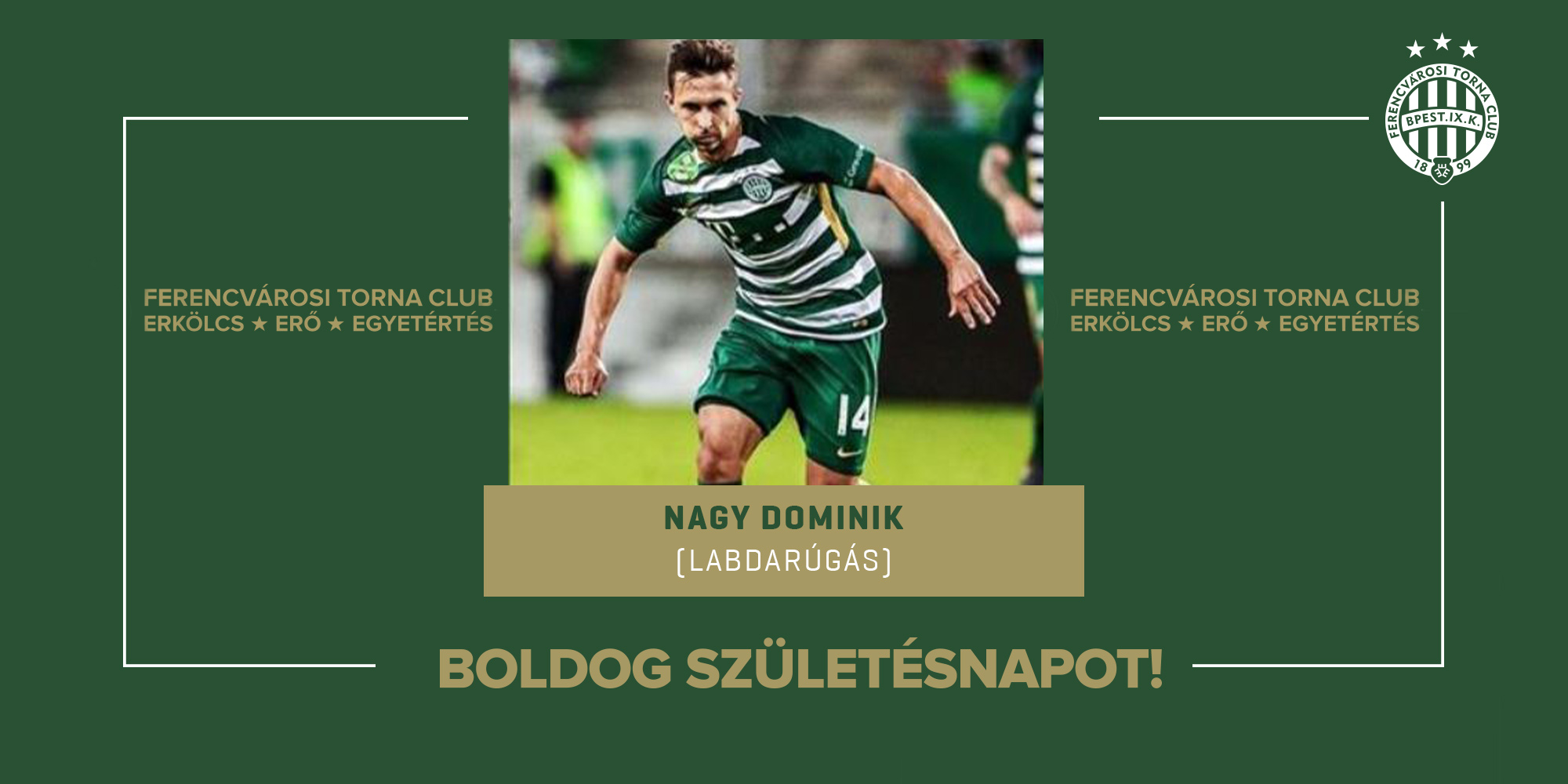 Boldog születésnapot férfi labdarúgócsapatunk korábbi játékosának, Nagy Dominiknak, aki egy magyar bajnoki címet, három MK-t, egy Szuperkupát és egy Ligakupát nyert az FTC-vel.