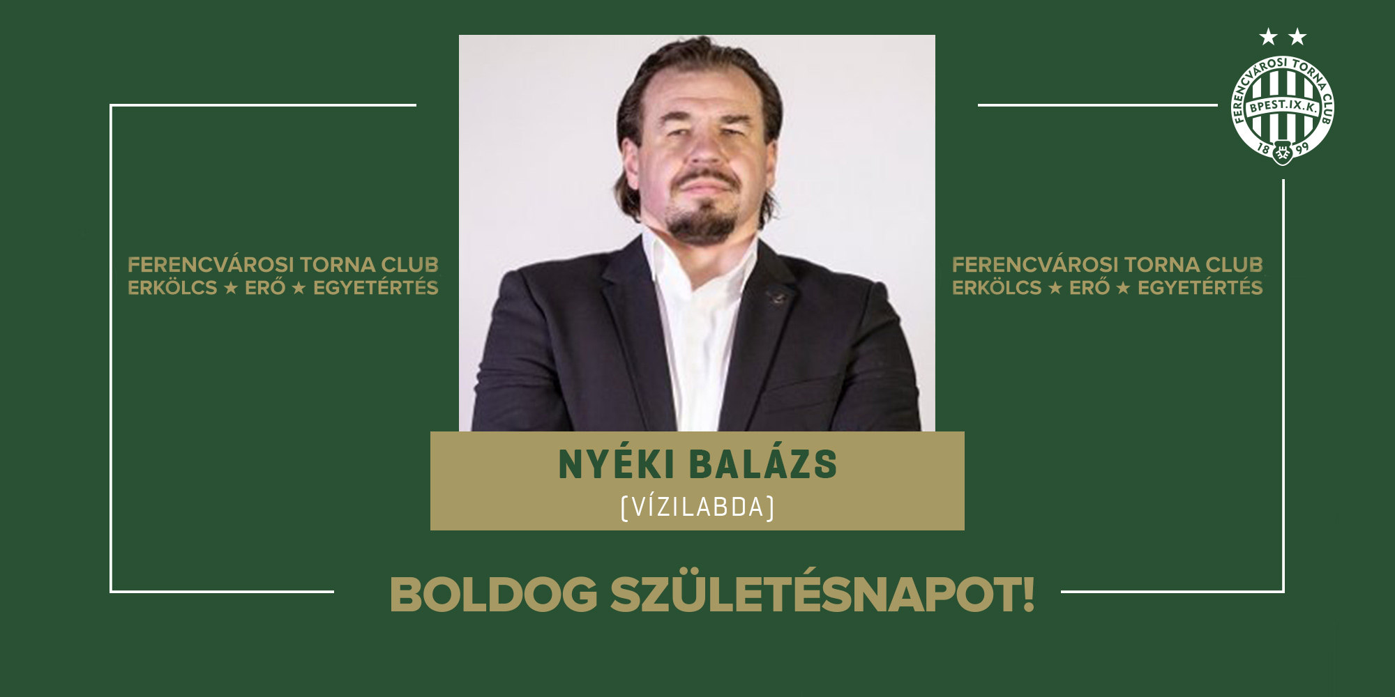 Szintén ma ünnepli születésnapját Nyéki Balázs, férfi vízilabdacsapatunk vezetőedzője, aki játékosként magyar bajnoki címet, Szuperkupát, KEK-et és EK-t, edzőként két bajnokságot, két Magyar Kupát, két Bajnokok Ligáját és egy európai Szuperkupát nyert együttesünkkel.