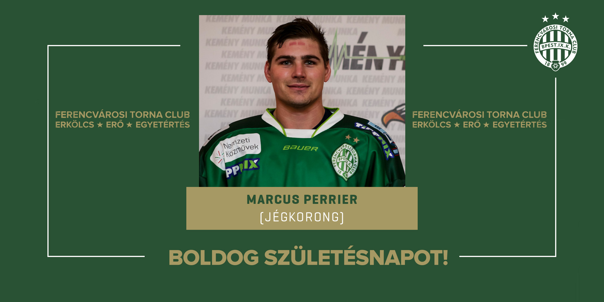 Boldog születésnapot Marcus Perriernek, férfi jégkorongcsapatunk korábbi kanadai játékosának, aki bajnoki címet nyert a Fradival.