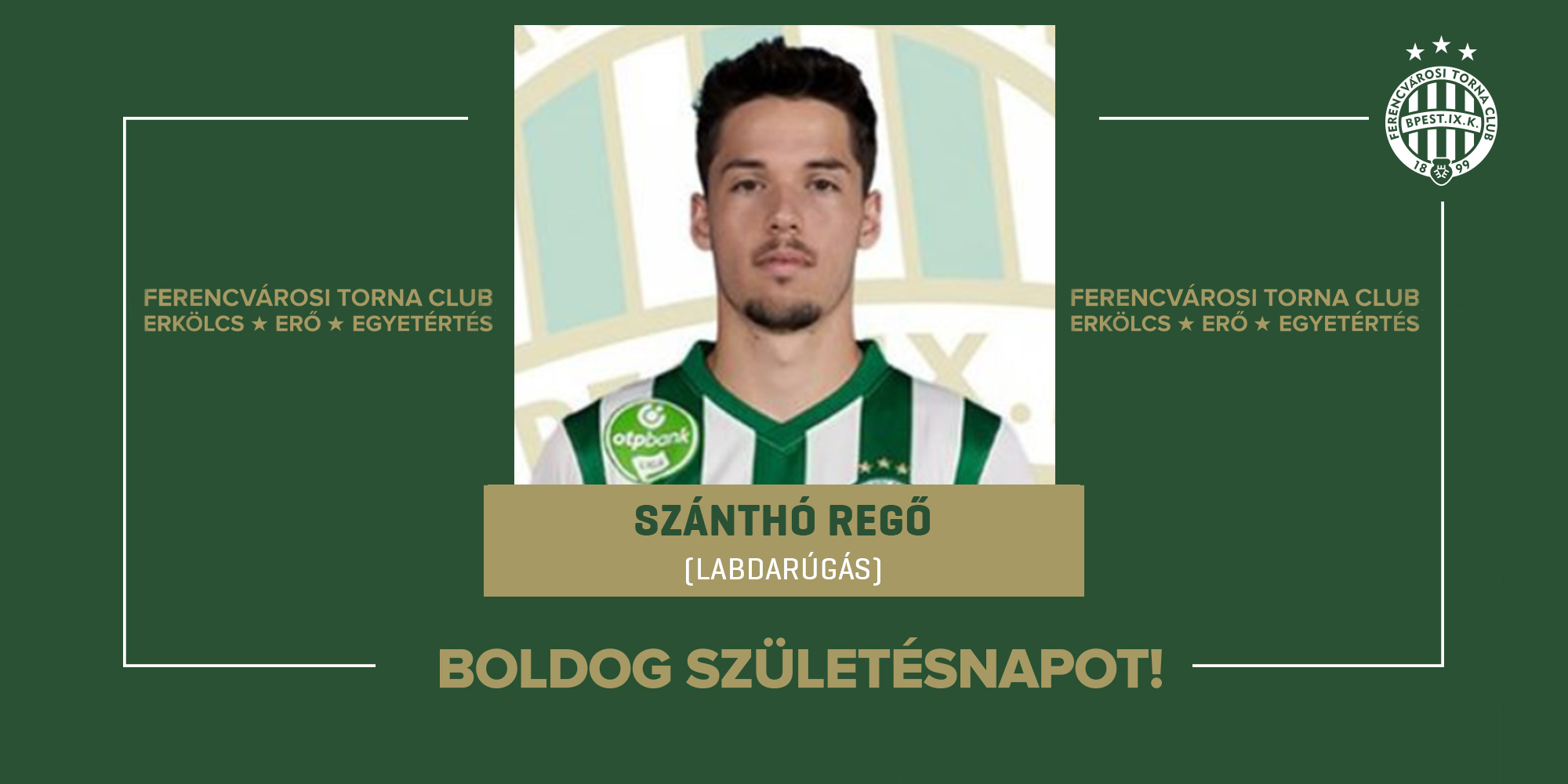 Ma ünnepli születésnapját labdarúgócsapatunk korábbi játékosa, az utánpótlás-válogatott szélső, a kétszeres magyar bajnok, MK-győztes Szánthó Regő, aki a 2021/22-es szezonban tagja volt EL-csoportkörös együttesüknek.