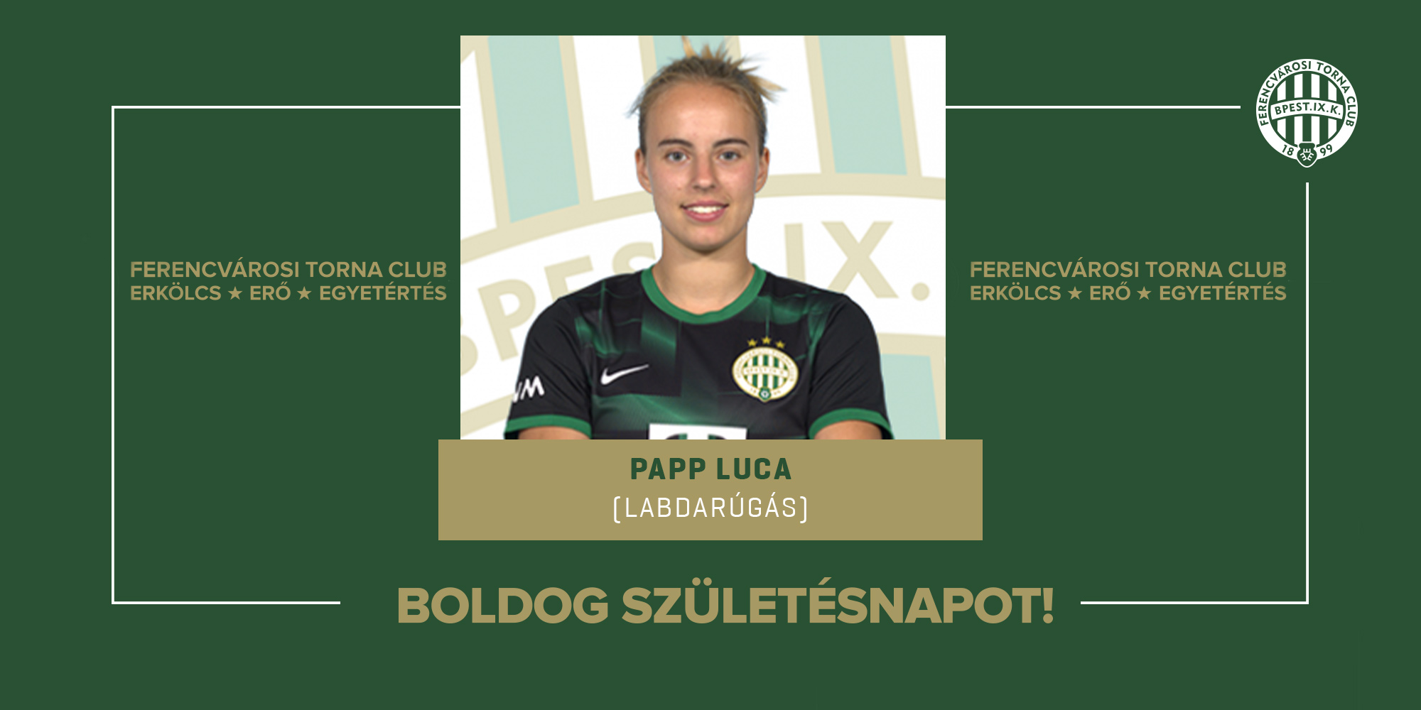 Ma ünnepli születésnapját női labdarúgócsapatunk magyar válogatott korábbi játékosa, Papp Luca, aki öt magyar bajnoki címet és két MK-t nyert csapatunkkal.