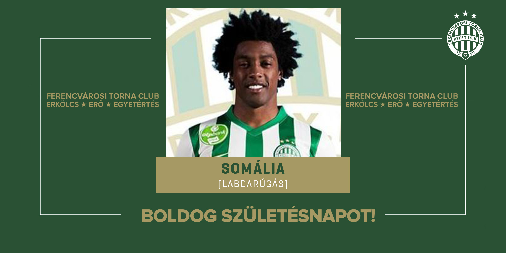Szeptember 28-án ünnepli születésnapját férfi labdarúgócsapatunk korábbi kiválósága, a négyszeres magyar bajnok, kétszeres MK-, Ligakupa- és Szuperkupa-győztes Somália. 2020-ban tagja volt a BL, 2021-ben pedig az UEL csoportkörébe jutott együttesnek.