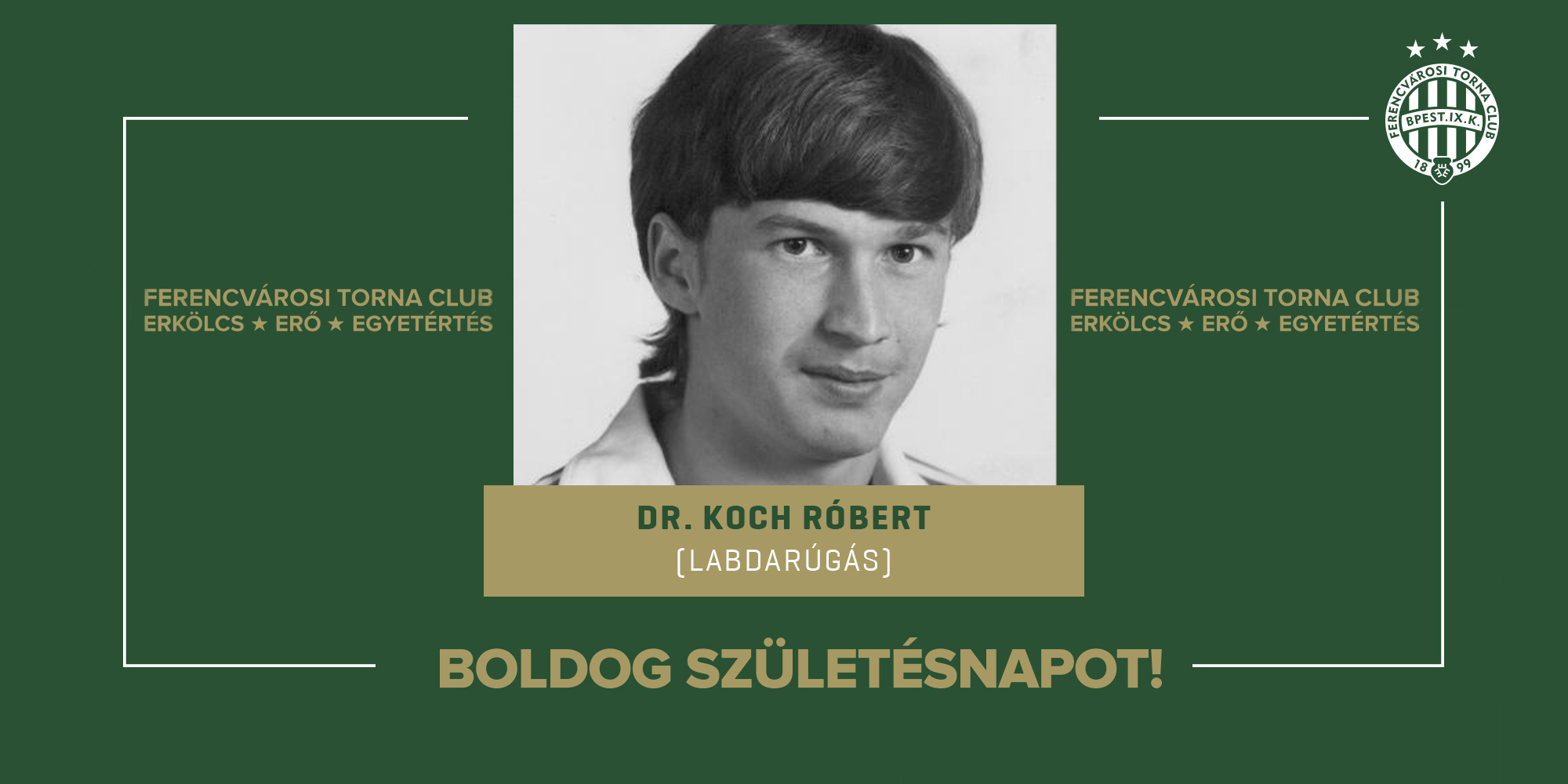 Ma ünnepli születésnapját kétszeres magyar bajnok korábbi labdarúgónk, dr. Koch Róbert, aki 1979 és 1991 között 147 meccsen játszott az FTC-ben, és 37 gólt szerzett.