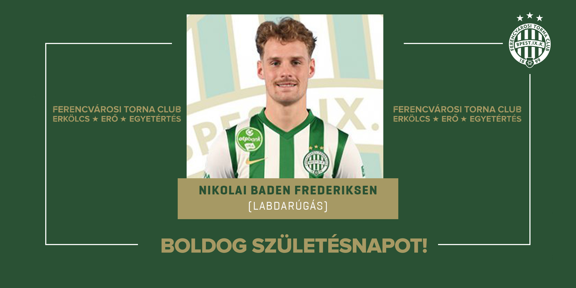 Ma ünnepli születésnapját az FTC-vel egy magyar bajnoki címet nyert és az UEFA Európa Liga nyolcaddöntőjébe jutott Nikolai Baden Frederiksen.