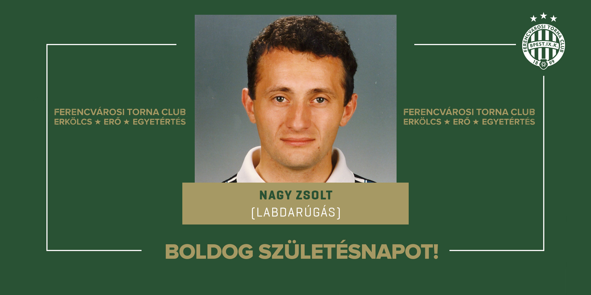 Június 4-én ünnepli születésnapját korábbi labdarúgónk, Nagy Zsolt, aki három bajnoki címet, négy Magyar Kupát és három Szuperkupát nyert a Fradival, valamint tagja volt az 1995-ben a Bajnokok Ligája csoportkörébe jutott együttesünknek.