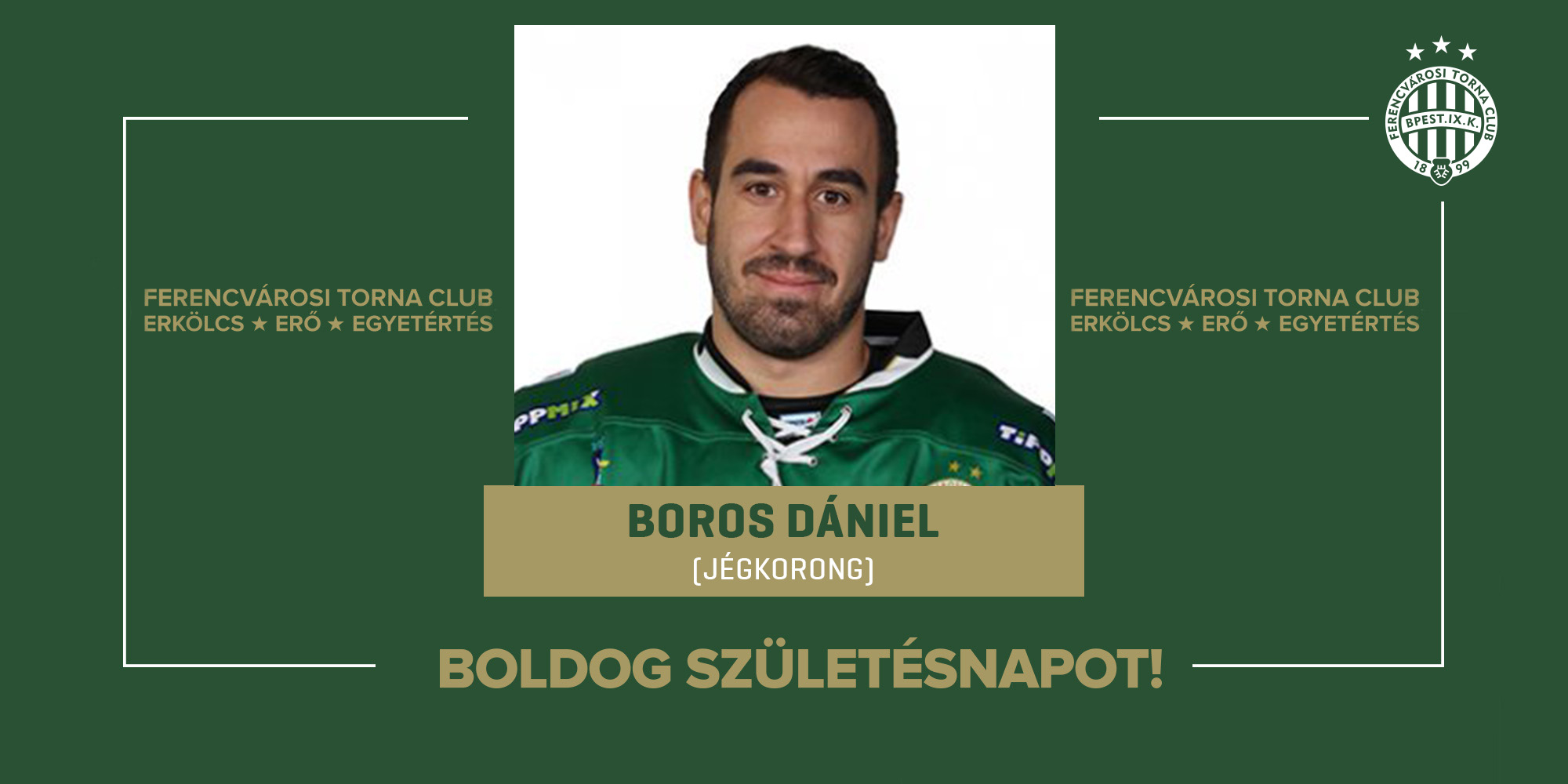 Ma ünnepli születésnapját jégkorongcsapatunk korábbi játékosa, Boros Dániel, aki hat magyar bajnoki címet, két Erste Ligát, valamint egy Magyar Kupát és egy Szuperkupát nyert a Ferencváros játékosaként.