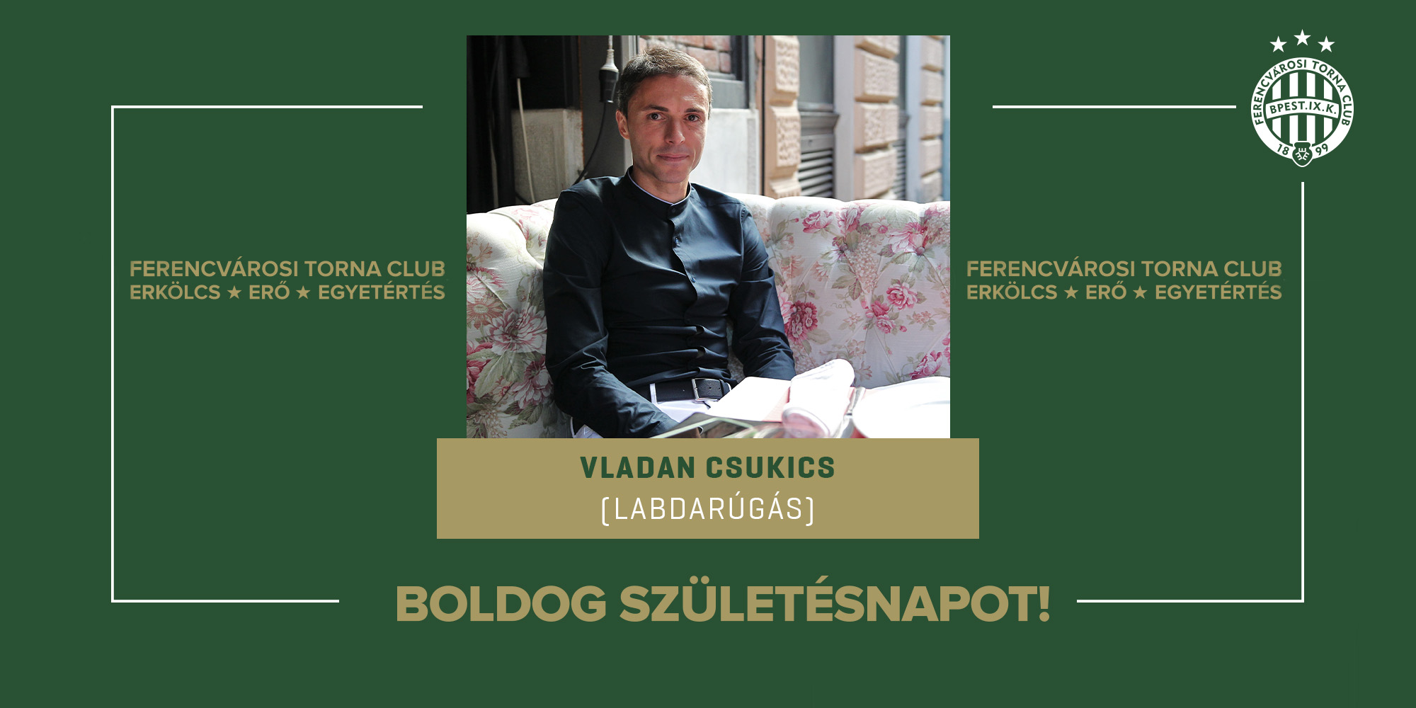 Ma ünnepli születésnapját Vladan Csukics, aki 2012 és 2017 között 183 meccsen játszott a Ferencvárosban, a mienkkel hazai fronton mindent - bajnokságot, 3 Magyar Kupát, 2 Szuperkupát, 2 Ligakupát - megnyert. Jelenleg játékosmegfigyelőként dolgozik klubunknál.