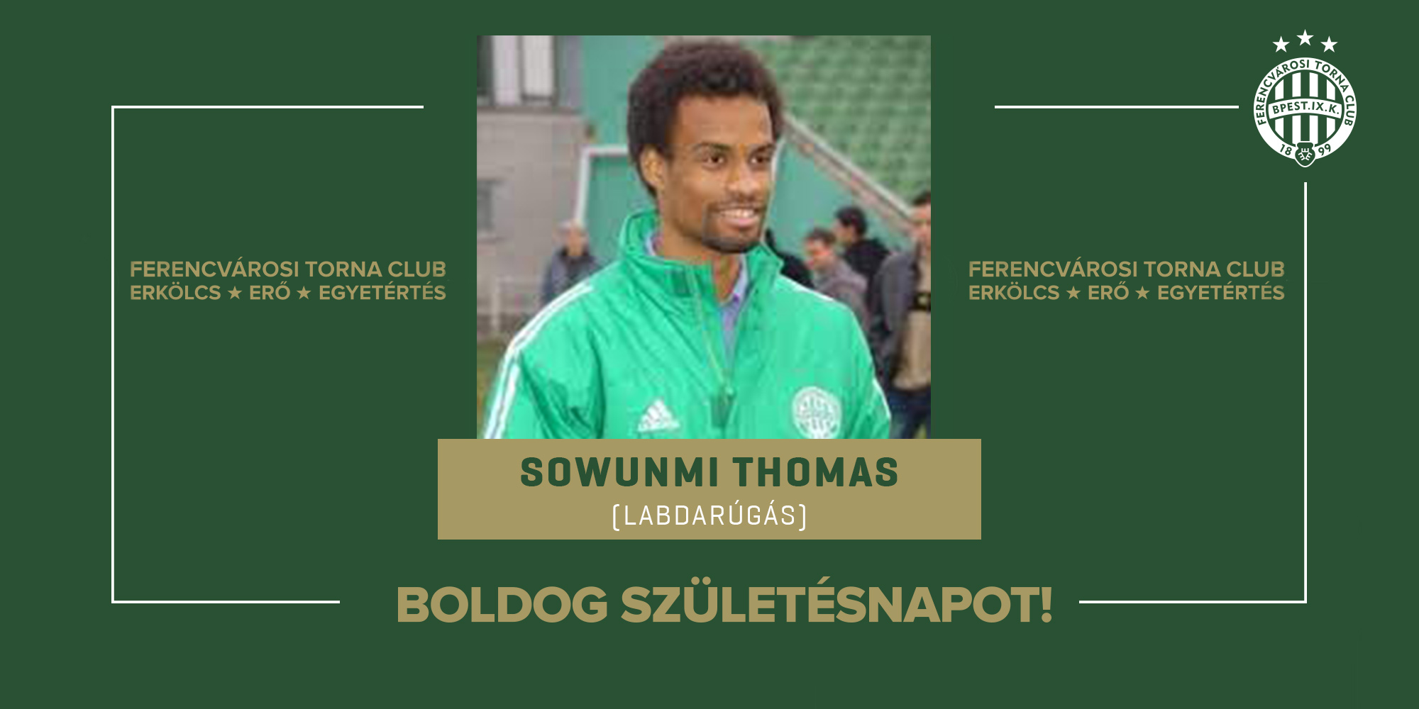 Ma ünnepli születésnapját a Fradival egy bajnoki címet, két MK-t és egy Szuperkupát nyert, valamint UEFA Kupa csoportkörében is pályára lépett korábbi labdarúgó, Sowunmi Thomas.