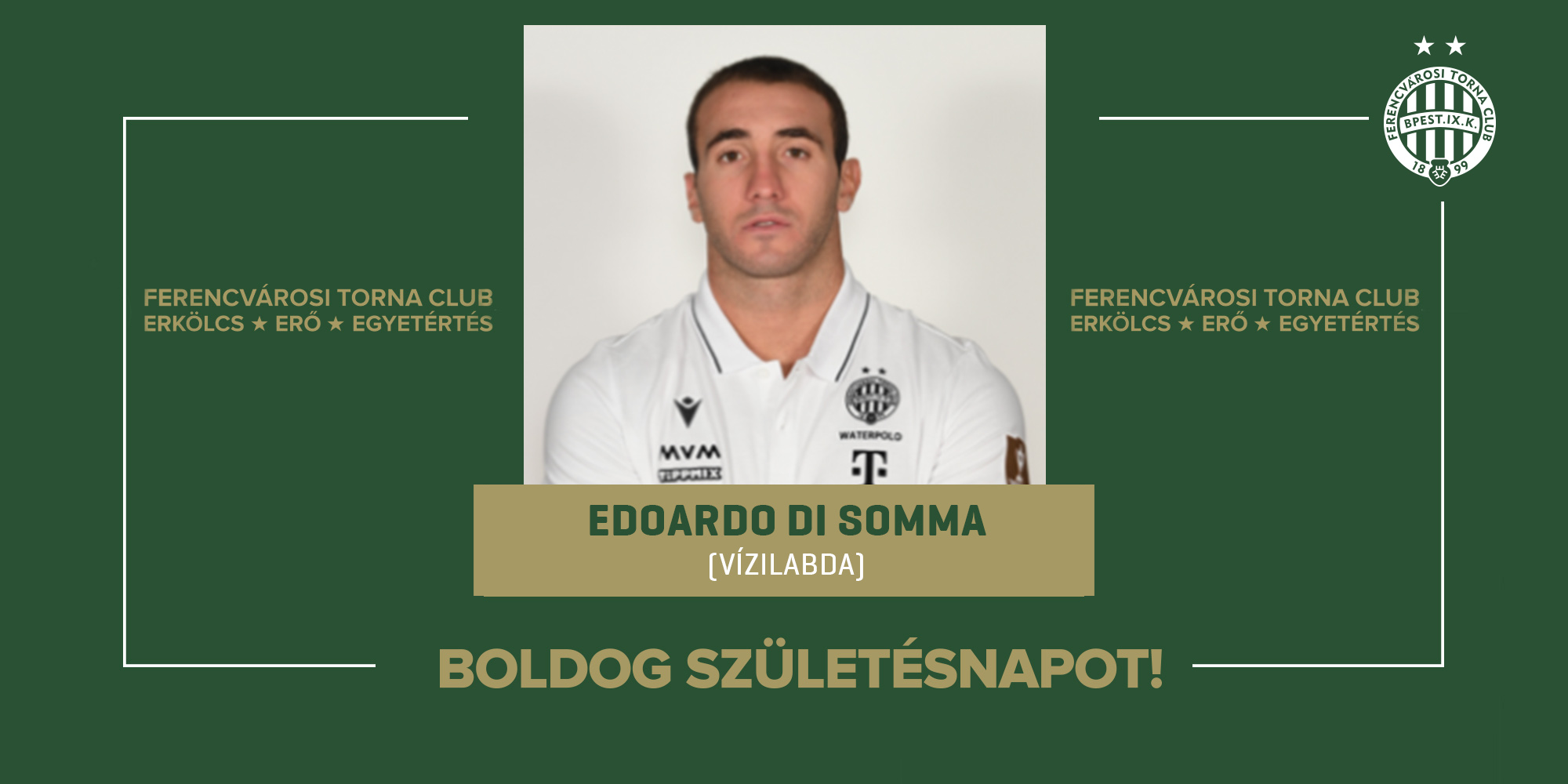 Boldog születésnapot kívánunk férfi vízilabdacsapatunk játékosának, a kétszeres magyar bajnok, háromszoros MK-győztes, kétszeres BL-győztes, Európai Szuperkupa-győztes Edoardo di Sommának!