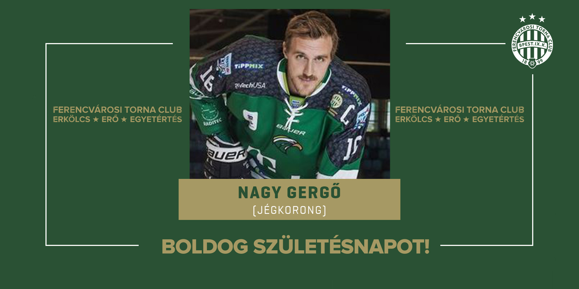 Köszöntsük születésnapján jégkorongcsapatunk korábbi kapitányát, Nagy Gergőt, aki a Fradival hatszor nyert bajnokságot, kétszer Erste Ligát, illetve egy Magyar Kupát és két Szuperkupát.