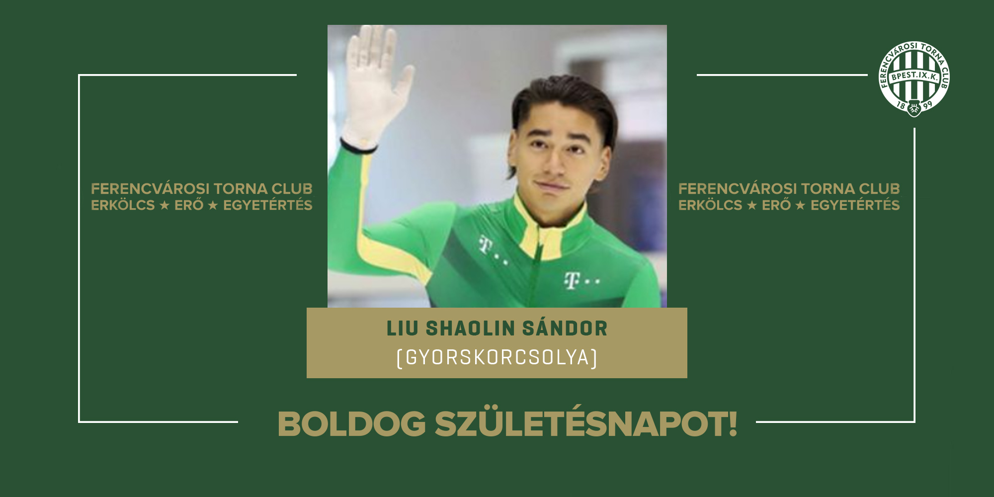 Szintén ma ünnepli születésnapját az FTC világbajnok, kétszeres Európa-bajnok, világkupagyőztes és magyar bajnok korábbi rövidpályás gyorskorcsolyázója, Liu Shaolin Sándor.