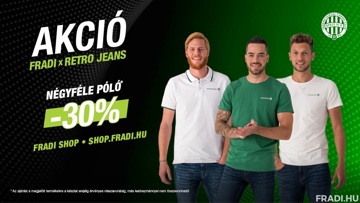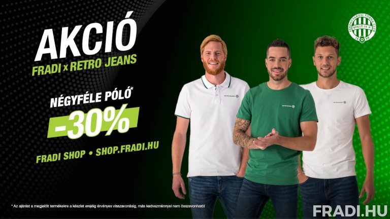 Csapjon le a Fradi és a Retro Jeans közös kollekciójára! A Fradi Shopban és a shop.fradi.hu-n most négy népszerű termékünket szerezheti be 30% kedvezménnyel: