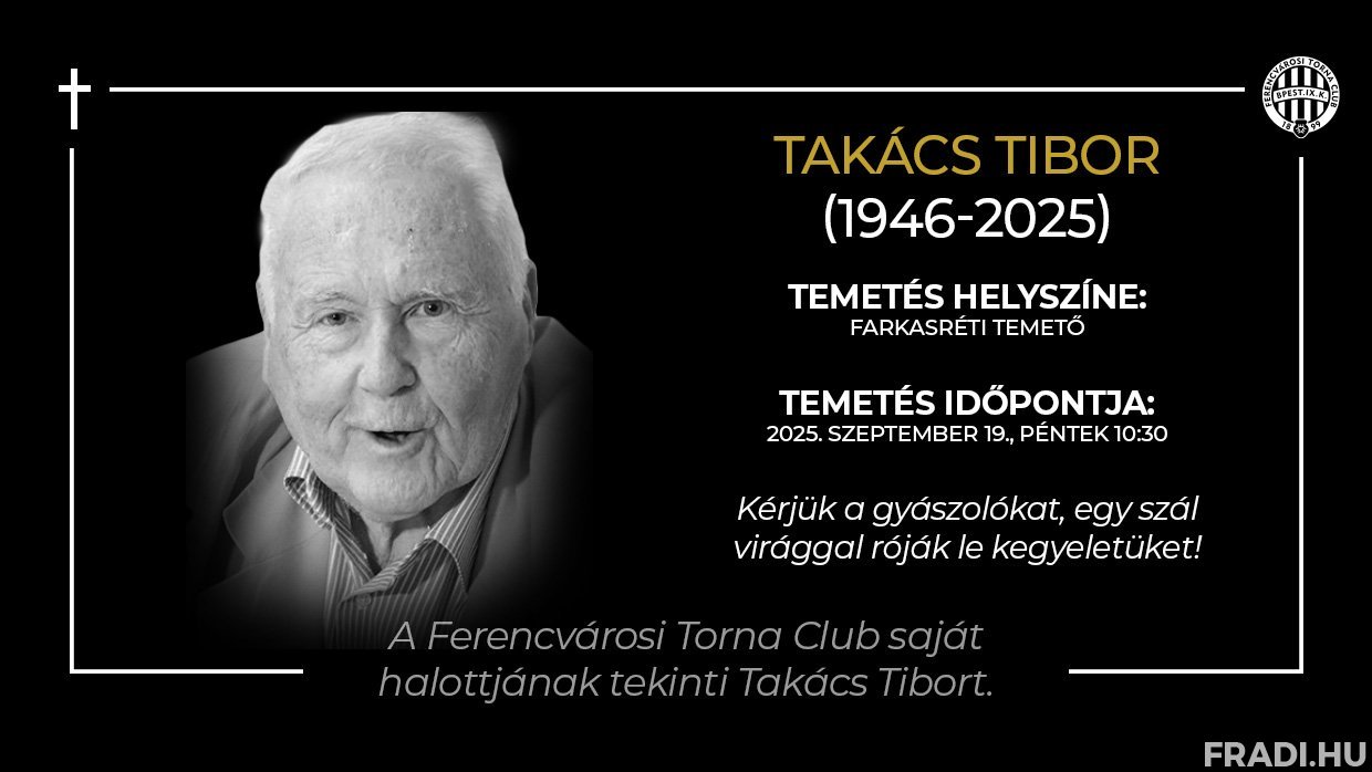 Takács Tibort a Ferencvárosi Torna Club saját halottjának tekinti. Isten nyugosztalja, emlékét örökké megőrizzük!