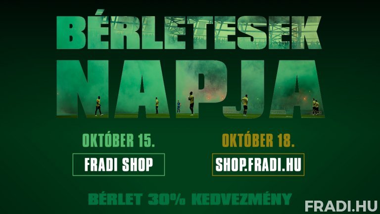 A Fradi Shop a 2022-es évben utoljára rendezi meg a Bérletesek Napját, ezúttal is két felvonásban. Először október 15-én, szombaton szeretnénk megköszönni összes szezonbérlettel rendelkező drukkerünk támogatását kizárólag offline, a Fradi Shopban. Ezt követően október 18-án, kedden pedig csak az online felületünkön, a shop.fradi.hu-n várjuk szurkolóinkat kedvezményes árakkal. Október 15-én, az offline alkalommal szakosztályi (kézilabda, vízilabda, jégkorong) bérleteseink számára is elérhető lesz a dupla kedvezmény. Fontos információ, hogy bérletes szurkolóink dupla kedvezményben részesülnek az adott napokon. Bérleteseink 15% helyett 30% kedvezményre lesznek jogosultak.