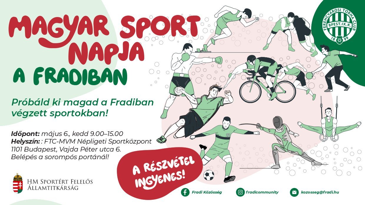 A Fradi B-közép tagjaival is találkozhatnak a Magyar Sport Napján, az FTC-MVM Népligeti Sportközpontban. Drukkereink közreműködésével szurkolói koreográfia-készítő szakkört szervezünk.