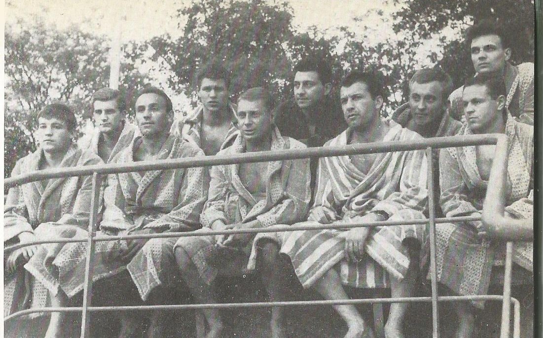 Balról jobbra: Fábián Dezső edző, Kárpáti György dr., Kiss Egon, Pottyondi Lajos dr., Laukó Álmos, Vörös Sándor, Felkai László, Rázga Tamás, Gyarmati Dezső, Ambrus Miklós.